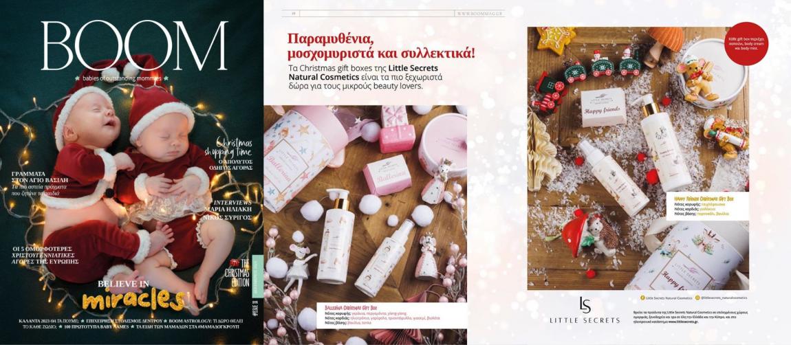Παραμυθένια, μοσχομυριστά και συλλεκτικά, τα κουτιά της Little Secrets Natural Cosmetics με τις υπέροχες συσκευασίες είναι και φέτος η πιο πρωτότυπη και ξεχωριστή πρόταση δώρου για τους μικρούς beauty lovers. Κάθε κουτί περιλαμβάνει περιέχει σαπούνι, body cream και body mist, δηλαδή μια πλήρη σειρά περιποίησης! Τώρα μένει να επιλέξετε ανάμεσα στα δύο: Ballerina ή Happy Friends;