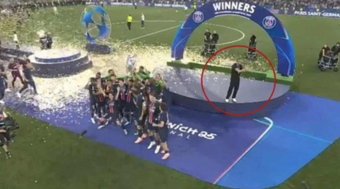 Την ώρα που οι παίκτες της ομάδας του σήκωναν το σπουδαιότερο τρόπαιο της Ευρώπης, ο φακός συνέλαβε τον Λουίς Ενρίκε να χειροκροτά τους παίκτες της Ίντερ.