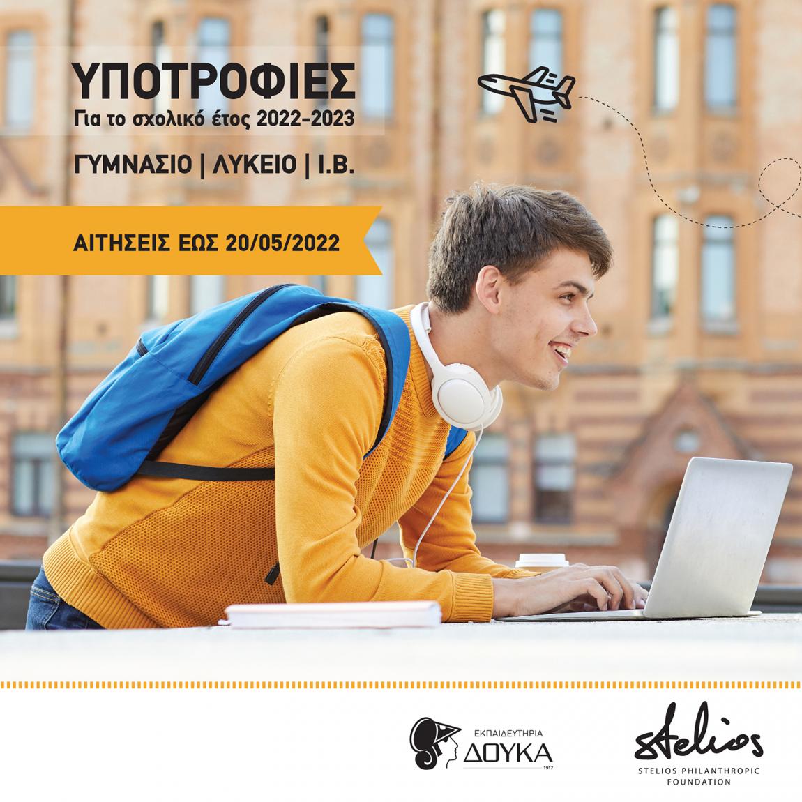 Στο πλαίσιο της συνεχούς ανάδειξης της Αριστείας, τα Εκπαιδευτήρια Δούκα παρέχουν τη δυνατότητα σε ακόμα περισσότερους άριστους μαθητές Γυμνασίου, Λυκείου και International Baccalaureate να ενταχθούν στη μεγάλη οικογένεια του σχολείου το επόμενο σχολικό έτος 2022 - 2023.