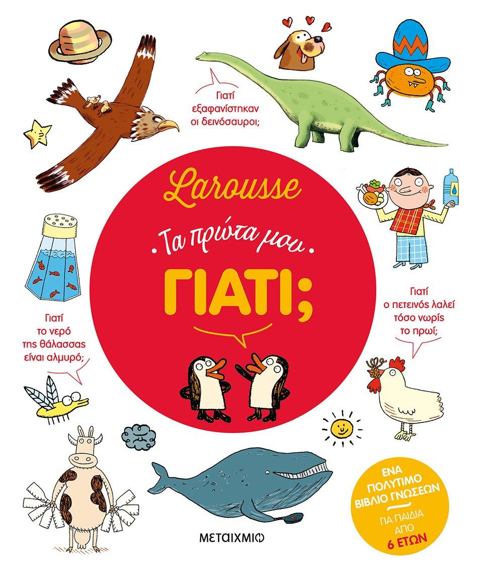 Στο βιβλίο Larousse: Τα πρώτα μου γιατί; δίνονται απαντήσεις σε περισσότερα από 300 μικρά και μεγαλύτερα ερωτήματα, με τα οποία μας βομβαρδίζουν τα παιδιά στην ηλικία που έχουν περιέργεια για τα πάντα, που κάθε μέρα ανακαλύπτουν κάτι καινούριο, που θέλουν να τα ξέρουν όλα, για να καταλάβουν τον κόσμο γύρω τους... αλλά και για να καθησυχαστούν!