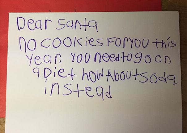 «Δεν έχει μπισκότα για σένα φέτος. Πρέπει να μπεις σε δίαιτα. Δοκίμασε σόδα για αλλαγή.»