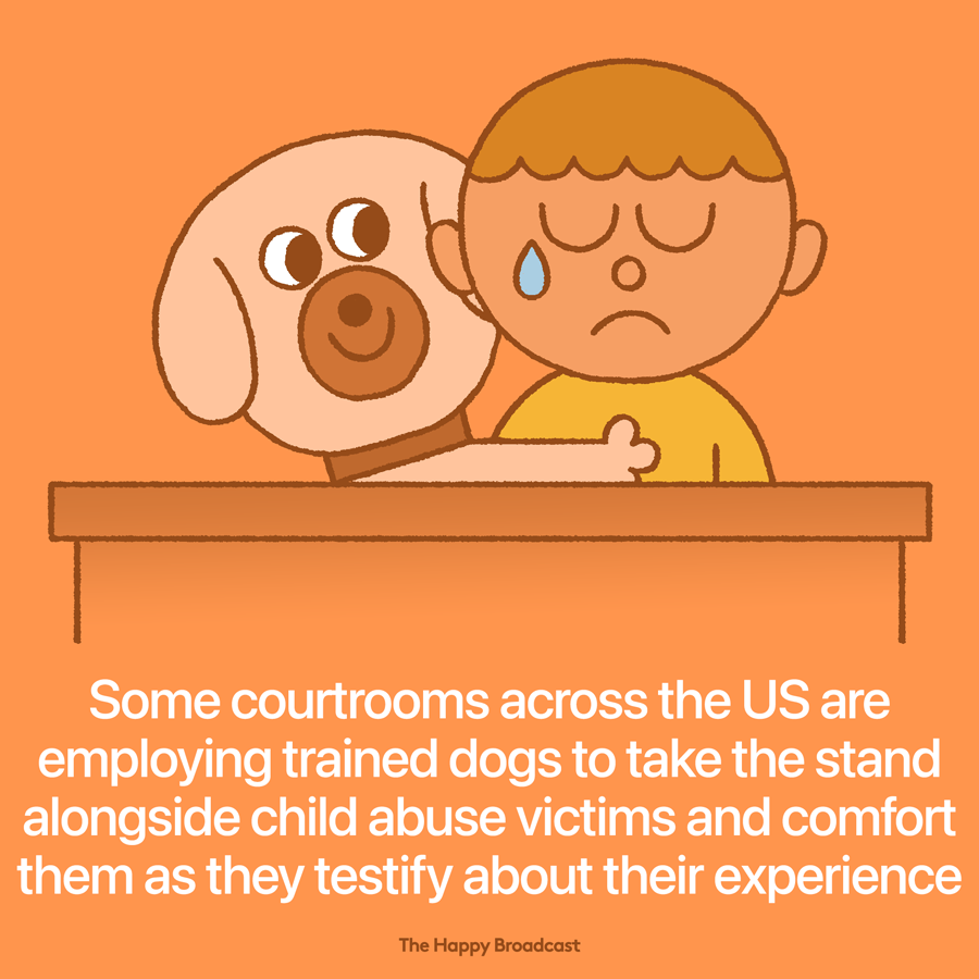 Σε μια υπέροχη πρωτοβουλία προχώρησαν στην Αμερική, που πλέον σε πολλές αίθουσες δικαστηρίων έχουν "προσληφθεί" εκπαιδευμένα σκυλιά, των οποίων καθήκον είναι να στέκονται δίπλα σε παιδιά που έχουν υποστεί κακοποίηση, ενώ εκείνα καταθέτουν την εμπειρία τους. Η κίνηση αυτή βοηθάει στο να μετατραπεί η διαδικασία κατάθεσης σε "υπόθεση αγάπης", αφού έτσι τα παιδιά θα έχουν δίπλα τους έναν δικό τους υποστηρικτή. Άλλωστε οι σκύλοι είναι οι καλύτεροι φίλοι του ανθρώπου!