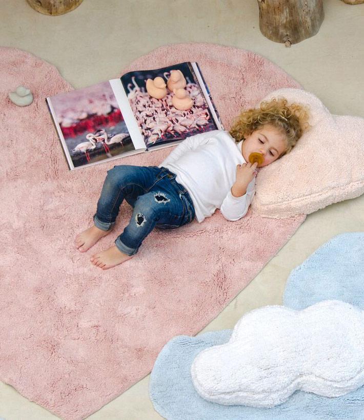 Χαλί δωματίου Lorena Canals Puffy Love με μαξιλάρι. Θα απογειώσει τη διακόσμηση του παιδικού δωματίου και το παιδί σας δεν θα το αποχωρίζεται! Πλένεται στο πλυντήριο του σπιτιού σας, είναι χειροποίητο από 100% φυσικό βαμβάκι με μη τοξικές βαφές που προορίζονται για παιδιά.