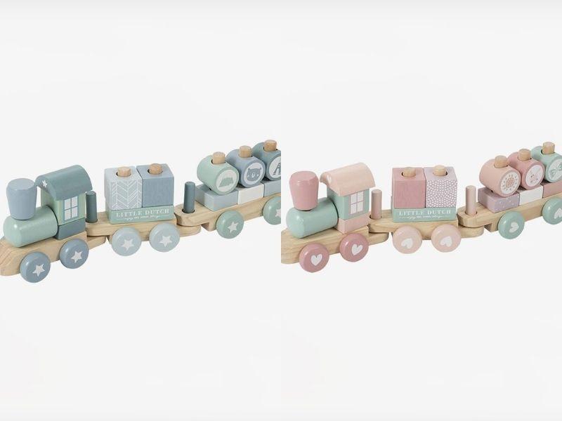 Little Dutch ξύλινο τρενάκι. Έχει 2 βαγόνια, αποτελείται από 17 κομμάτια συνολικά και θα προσφέρει ώρες παιχνιδιού και χαράς, ενώ ενθαρρύνει και την άσκηση λεπτής κίνησης. Επιπλέον, διακοσμεί υπέροχα το παιδικό δωμάτιο. Κατάλληλο για ηλικίες 12 μηνών και άνω