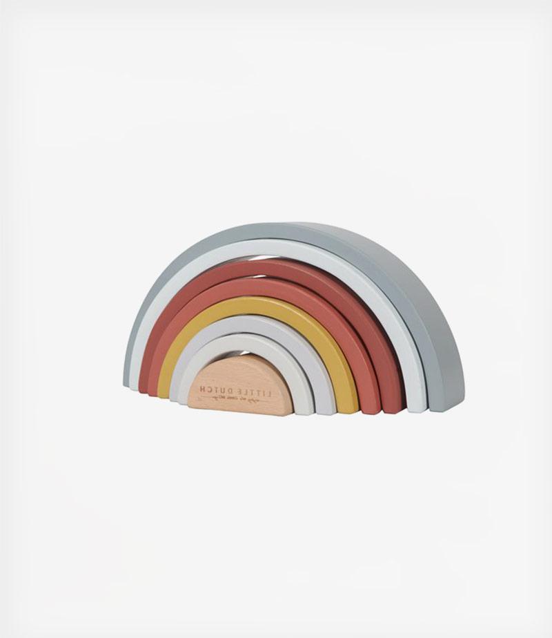 Little Dutch ξύλινο τρισδιάστατο ουράνιο τόξο Pure & Nature. Αυτός ο πρωτότυπος πύργος στοίβαξης από τη Little Dutch, που έχει τη μορφή ενός πανέμορφου ουράνιου τόξου, μπορεί να διακοσμήσει το παιδικό δωμάτιο, αλλά και να χαρίσει ατελείωτες ώρες παιχνιδιού και διασκέδασης στο παιδί σας. Αποτελείται από 8 καμάρες που ταιριάζουν απόλυτα μεταξύ τους, με τις οποίες το παιδί μπορεί να παίξει και να μάθει να δημιουργεί διαφορετικές κατασκευές, χρησιμοποιώντας τη φαντασία του. Παίζοντας με το ουράνιο τόξο, το παιδί αναπτύσσει τις κινητικές του δεξιότητες μαθαίνει, ανακαλύπτει και εξασκεί τη φαντασία του. Είναι βαμμένο με χρώματα που έχουν ως βάση το νερό. Κατάλληλο για ηλικίες: 12 μηνών+