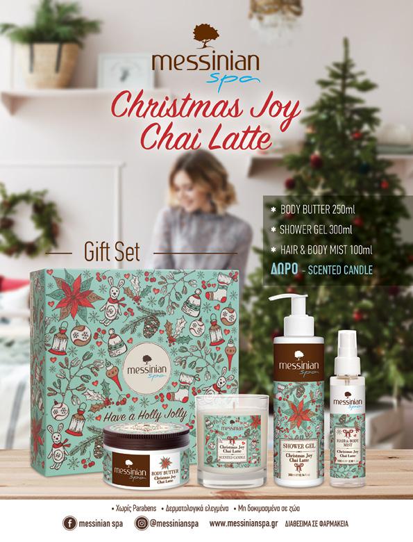 Αφρόλουτρο Christmas Joy- Chai Latte: Διαθέτει ένα ιδιαίτερο άρωμα με απαλή σύνθεση, ενώ περιέχει και ΠΟΠ εξαιρετικό παρθένο ελαιόλαδο Καλαμάτας, που χαρίζει στην επιδερμίδα μια εμπειρία περιποίησης, κάνοντάς την απαλή και μεταξένια.