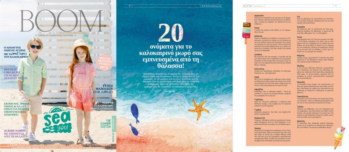 Θαλασσινά, πρωτότυπα, λουσμένα στο ελληνικό φως, με αλμυρή γεύση και υπερφυσικές δυνάμεις, όπως εκείνες των ωκεανών, τα 20 ονόματα που αντλούν έμπνευση από τη θάλασσα (και τα περισσότερα από αυτά από την ελληνική μυθολογία), έρχονται να δώσουν απάντηση στο ερώτημα πώς θα ονομάσετε το καλοκαιρινό μωρό σας!