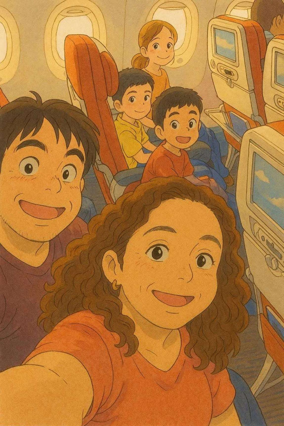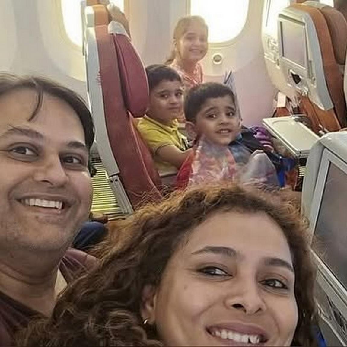 Στη φωτογραφία, που τράβηξε ο γιατρός Prateek Josh, φαίνεται ο ίδιος να κάθεται μαζί με τη σύζυγό του Komi Vyas δεξιά από τον διάδρομο του αεροπλάνου, και πίσω τους, στην αριστερή πλευρά, τα 3 παιδιά τους - τα δίδυμα 5χρονα αγόρια Nakul και Pradyut, και η 8χρονη κόρη τους, Miraya- να χαμογελούν.