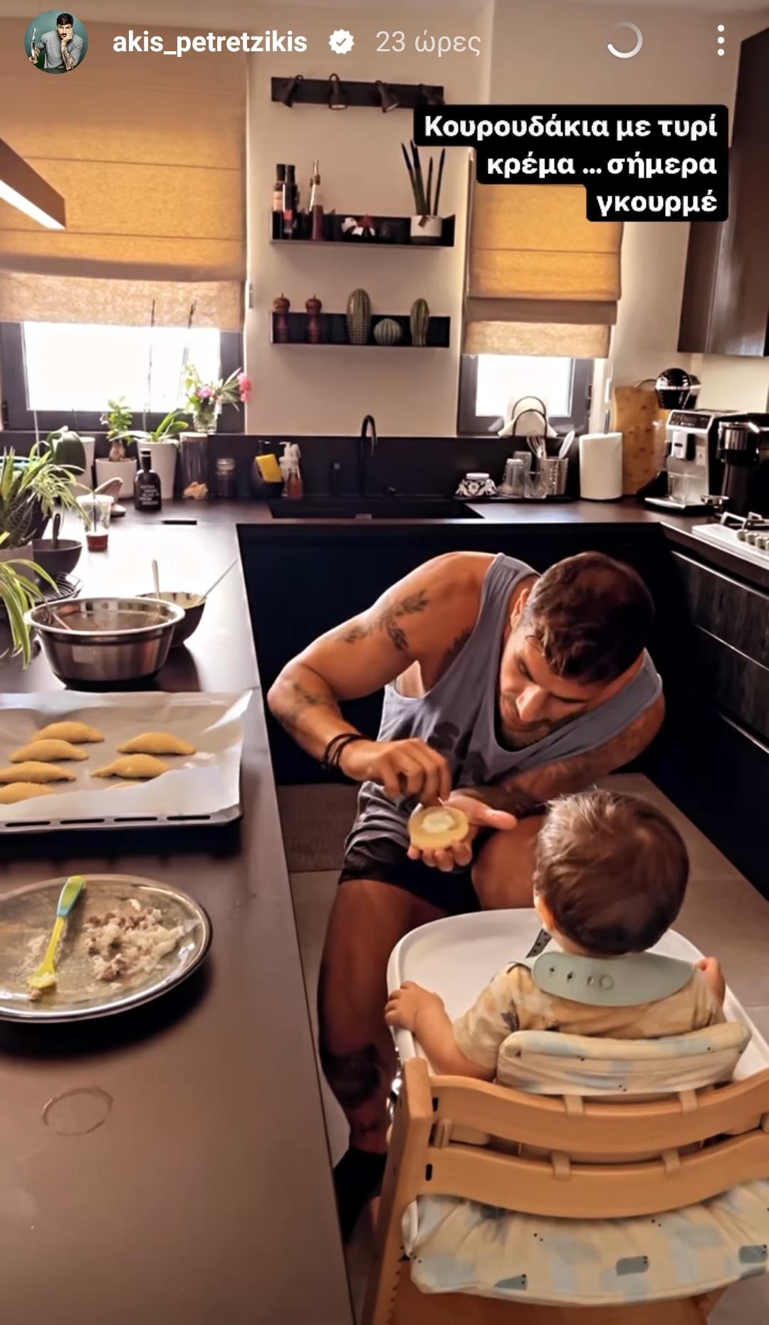 Εν αναμονή του δεύτερου παιδιού του, ο Άκης Πετρετζίκης περνάει πολύτιμες στιγμές μαζί με τον γιο του - αυτή τη φορά στην κουζίνα του σπιτιού τους - και η μαμά απαθανατίζει τα όμορφα οικογενειακά στιγμιότυπα! Ο διάσημος σεφ και ο μικρός Αχιλλέας ετοίμασαν τυροπιτάκια κουρύ με τυρί κρέμα και το αποτέλεσμα, όπως μας διαβεβαίωσε ο μικρός, ήταν απλά μαγικό!