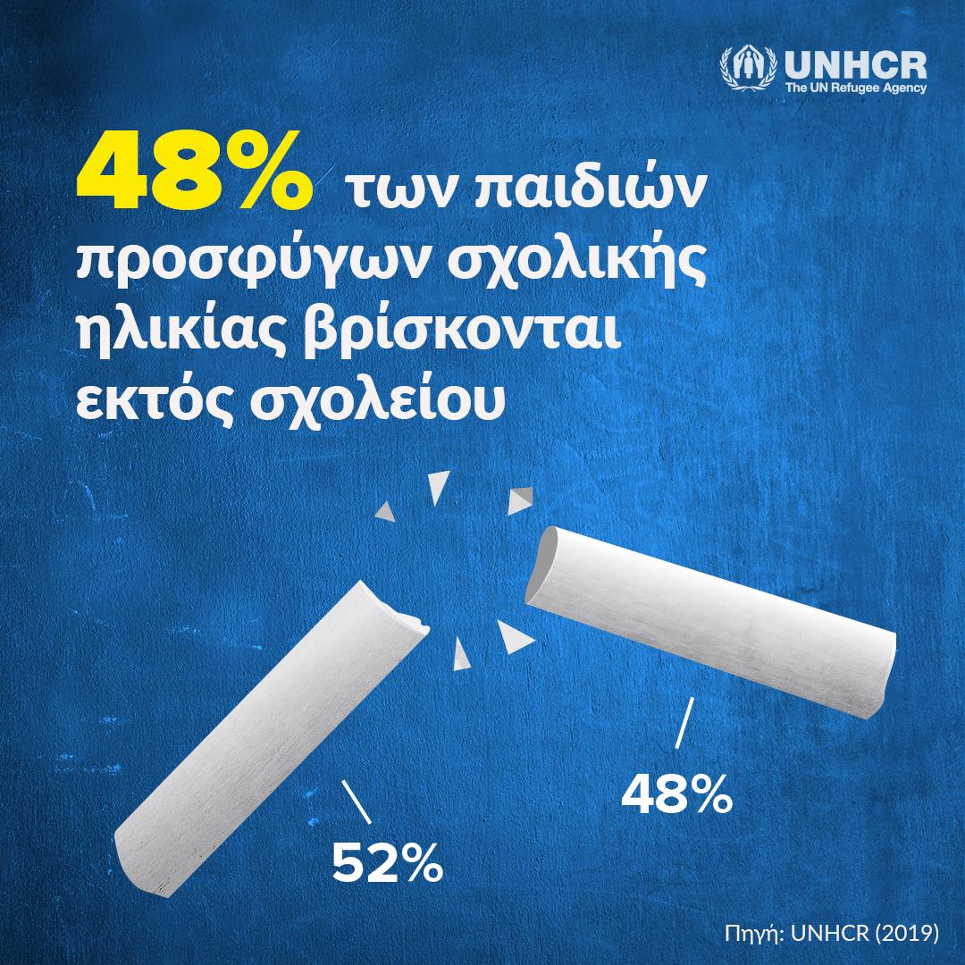 Εάν η διεθνής κοινότητα δεν αναλάβει άμεση και τολμηρή δράση για να ανασχέσει τις καταστροφικές επιπτώσεις του COVID-19 στην εκπαίδευση των προσφύγων, απειλούνται περαιτέρω οι προοπτικές εκατομμυρίων νεαρών προσφύγων που ζουν στις πιο ευάλωτες κοινότητες του κόσμου, σύμφωνα με την έκθεση που δημοσίευσε χτες η Ύπατη Αρμοστεία του ΟΗΕ για τους Πρόσφυγες (Υ.Α.) με τίτλο «Ενώνοντας Δυνάμεις για την Εκπαίδευση των Προσφύγων» (“Coming Together for Refugee Education”). Τα δεδομένα της έκθεσης βασίζονται στα μεικτά στοιχεία εγγραφών στα σχολεία που προέκυψαν από τη σχολική χρονιά 2019.