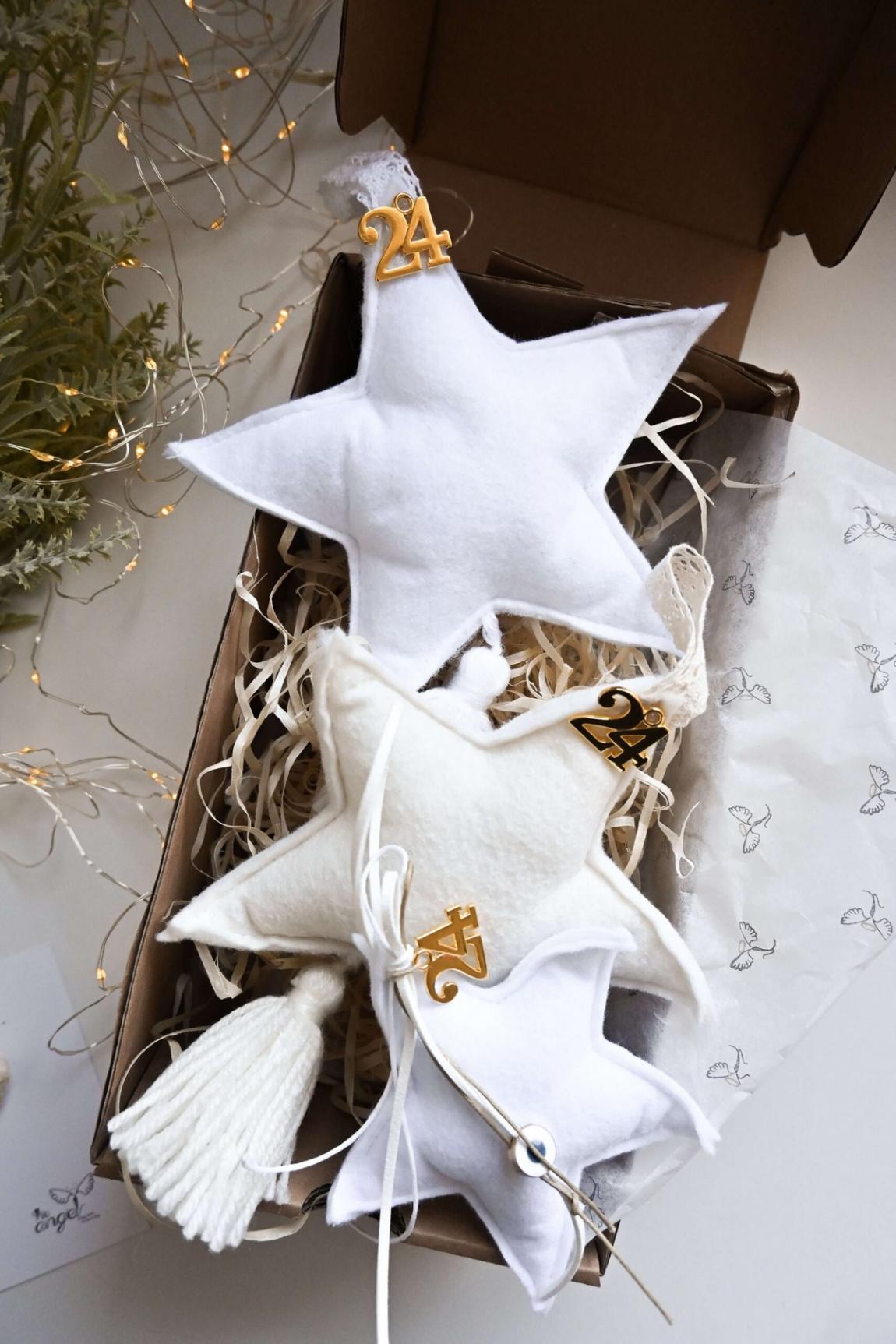 #1 Xmas Gift Box Cashmere: Το box περιλαμβάνει 2 μεγάλα γούρια ’24, 1 μικρό γούρι '24, 2 wax melt αστεράκια, ημερολόγιο 2024 και κάρτα ευχών - τα It items για να ξεχωρίσει ένα σπιτικό και για να υποδεχθούν οι νέες μαμάδες τον καινούριο χρόνο με την πολυτέλεια και το στιλ που τους αρμόζει. Ps: Το άρωμα cashmere θα τις ενθουσιάσει!
