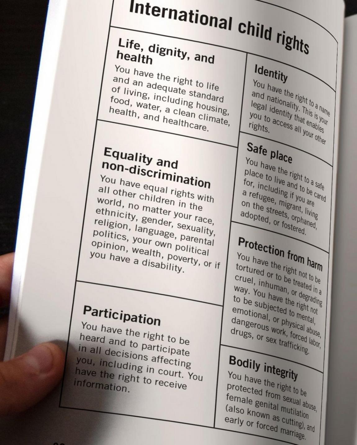 Και συνεχίζει: «Όταν τα παιδιά και οι νέοι έχουν την ιδιότητα, τη δύναμη και τη γνώση να μιλήσουν, μπορούν να αλλάξουν τη ζωή και των νέων και των ενηλίκων, βοηθώντας μας να δημιουργήσουμε μια πιο ισότιμη κοινωνία. Αυτό είναι το μήνυμα του καινούριου μας βιβλίου, “Know Your Rights and Claim Them”, που γράφτηκε σε συνεργασία με νέους ακτιβιστές από όλο τον κόσμο – και έχει γραφτεί γι’ αυτούς τους ίδιους και για τους πολλούς νέους που αγωνίζονται παγκοσμίως για τα δικαιώματά τους».