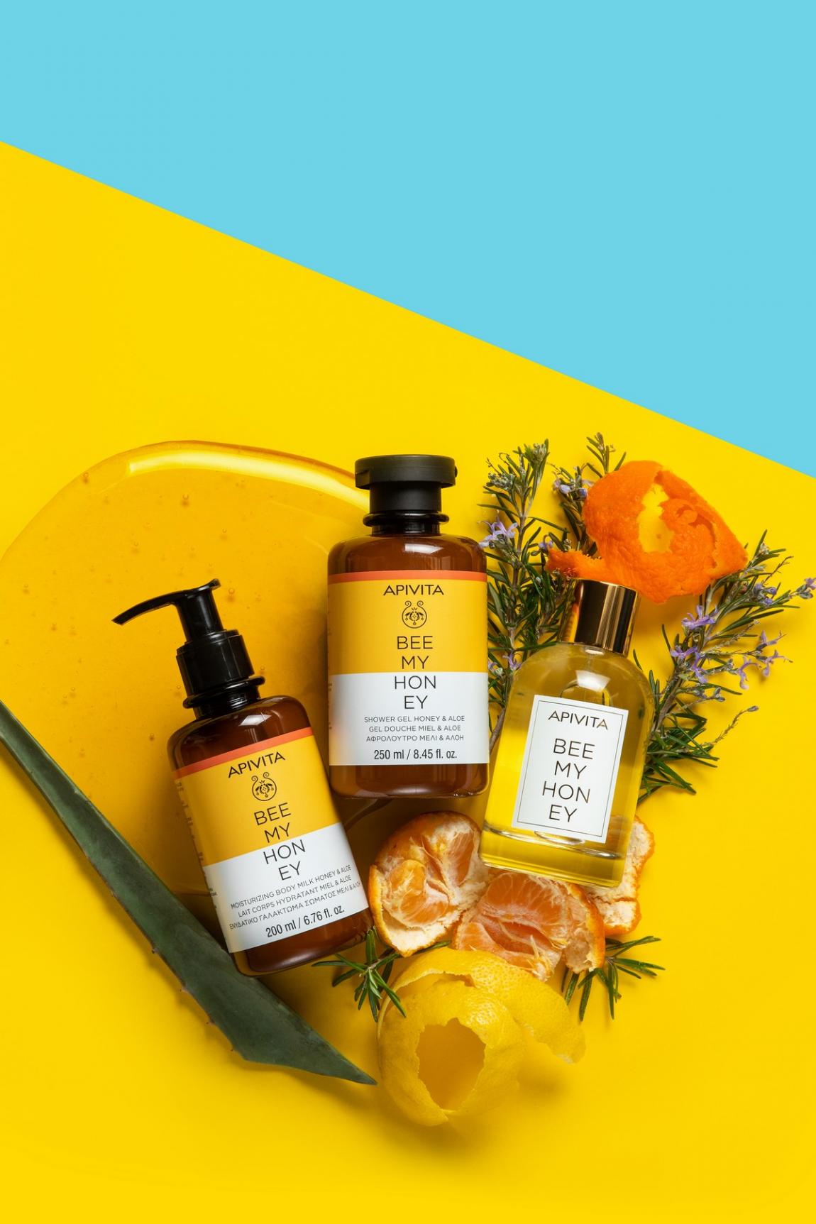 Bee My Honey – Spring festival to your skin! Το γλυκό φως όταν ξημερώνει, το αεράκι που χαϊδεύει τα μαλλιά στο αυτοκίνητο, τη ζεστασιά του φρέσκου μελιού, τα μεθυστικά αρώματα από τα άνθη εσπεριδοειδών, το γιασεμί και το δεντρολίβανο της ελληνικής γης, όλη αυτή τη γιορτή της άνοιξης αιχμαλώτισε η APIVITA στο eau de toilette BEE MY HONEY, που συμπληρώνεται από το μοσχομυριστό αφρόλουτρο και τη βελούδινη κρέμα σώματος που μόλις κυκλοφόρησαν! Μια φρέσκια, αναζωογονητική και ταυτόχρονα γλυκιά αίσθηση, σαν ανοιξιάτικο χάδι…