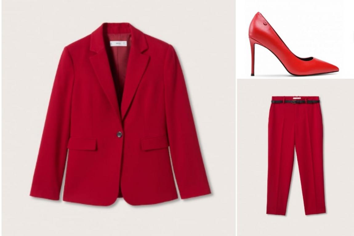 1. Κόκκινο σακάκι, Mango 2. Κόκκινο παντελόνι με ζώνη, Mango 3. Γόβες Eva Longoria
