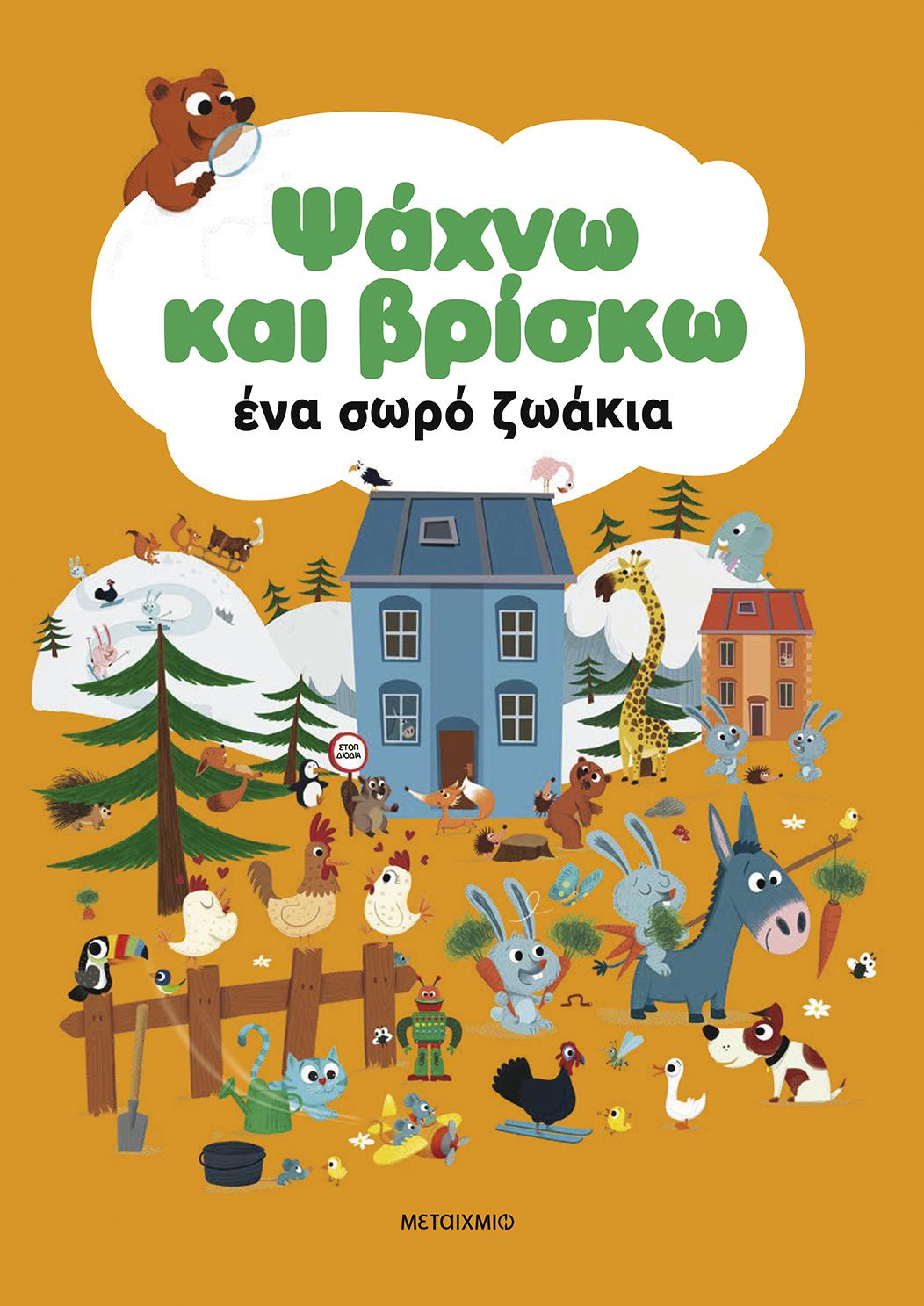 Ψάχνω και βρίσκω, Εικονογράφηση: Ρομέν Γκιγιάρ / Τεοντόρα Όπρια (από 2 ετών): Εκτός από πολύχρωμη και ευχάριστη εικονογράφηση, αυτά τα δύο διασκεδαστικά βιβλία κρύβουν στις σελίδες τους ένα σωρό λεπτομέρειες για να παρατηρήσει το παιδί, αλλά και εκπλήξεις και αντικείμενα που θα τα αναζητήσει και θα τα πει με το όνομά τους. Για να δούμε, ποιος θα κερδίσει το βραβείο παρατηρητικότητας;