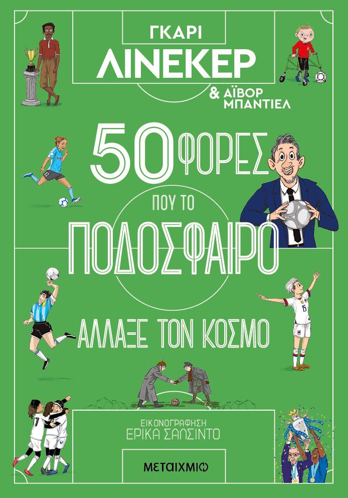 50 φορές που το ποδόσφαιρο άλλαξε τον κόσμο, Γκάρι Λίνεκερ & Άιβορ Μπαντίελ | Εικονογράφηση: Έρικα Σαλσίντο (από 9 ετών): Μήπως έχετε ακούσει για τον ποδοσφαιρικό αγώνα που δόθηκε μεταξύ αντίπαλων στρατιωτών κατά τη διάρκεια του Α΄ Παγκοσμίου πολέμου; Ή για την ομάδα γυναικών που απέδειξε ότι το ποδόσφαιρο είναι πραγματικά για όλους; Στοιχηματίζουμε ότι δεν ξέρατε πως μια ομάδα κέρδισε κάποτε ένα παιχνίδι χωρίς να πετύχει ούτε ένα γκολ!