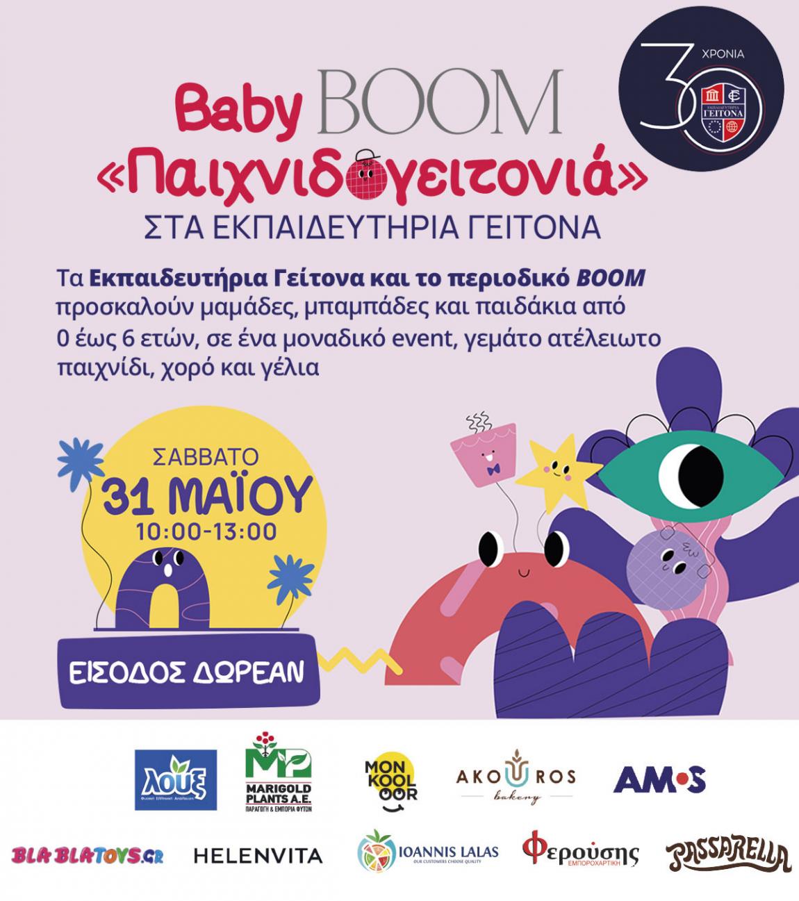 ΒABY BOOM «Παιχνιδογειτονιά» στα Εκπαιδευτήρια Γείτονα το Σάββατο 31 Μαΐου
