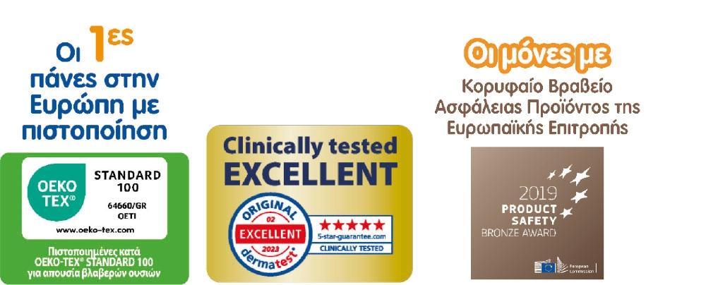 Με 0% λάτεξ, 0% λοσιόν και 0% παραβένες, απίστευτα απαλές, χάρη στο κάλυμμα cotton soft και με εκχύλισμα χαμομηλιού για περισσότερη φροντίδα, οι Babylino Sensitive είναι οι μόνες πάνες που πήραν κορυφαίο βραβείο ασφάλειας προϊόντος από την Ευρωπαϊκή Επιτροπή και οι πρώτες στην Ευρώπη που κατέκτησαν τη διεθνή πιστοποίηση OEKO-TEX® STANDARD 100 για απουσία πάνω από 200 βλαβερών ουσιών. Επίσης, τις συστήνουν εδώ και χρόνια ο Σύλλογος Επιστημόνων Μαιών και Μαιευτών Αθήνας και η Ελληνική Εταιρία Παιδιατρικής Δερματολογίας.