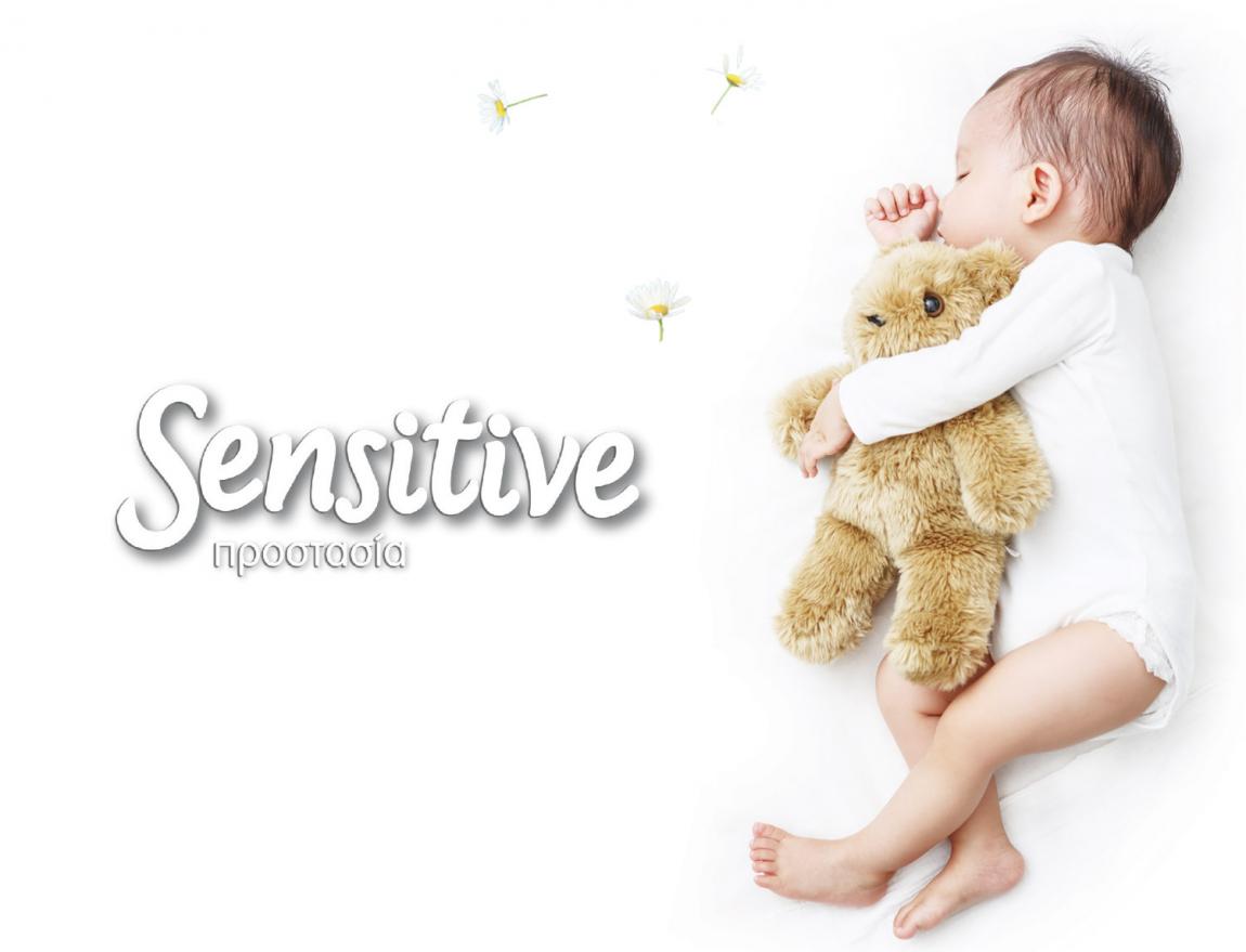 - Του προσφέρουμε την πιο sensitive φροντίδα σε κάθε επίπεδο, από το μπανάκι μέχρι την πάνα του. Αν σκεφτούμε μάλιστα ότι η πάνα του έρχεται σε άμεση επαφή με το ευαίσθητο βρεφικό δερματάκι σε όλη τη διάρκεια του 24ώρου, η επιλογή της είναι καθοριστική για την υγεία και την ευεξία του.