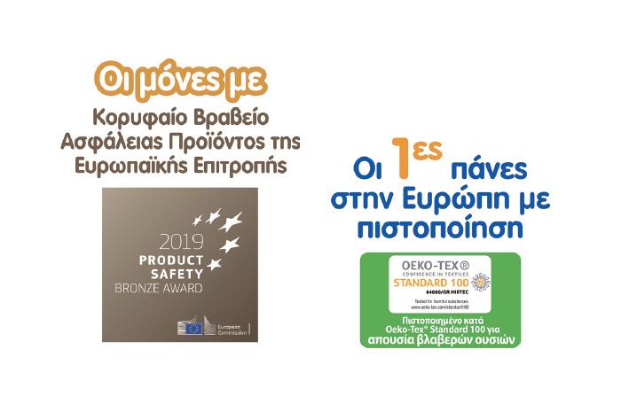 - Είναι οι μόνες βραβευμένες από την Ευρωπαϊκή Επιτροπή ως ένα από τα πιο ασφαλή βρεφικά προϊόντα της Ευρώπης, κατόπιν αυστηρής αξιολόγησης από ειδική κριτική επιτροπή της Ε.Ε.