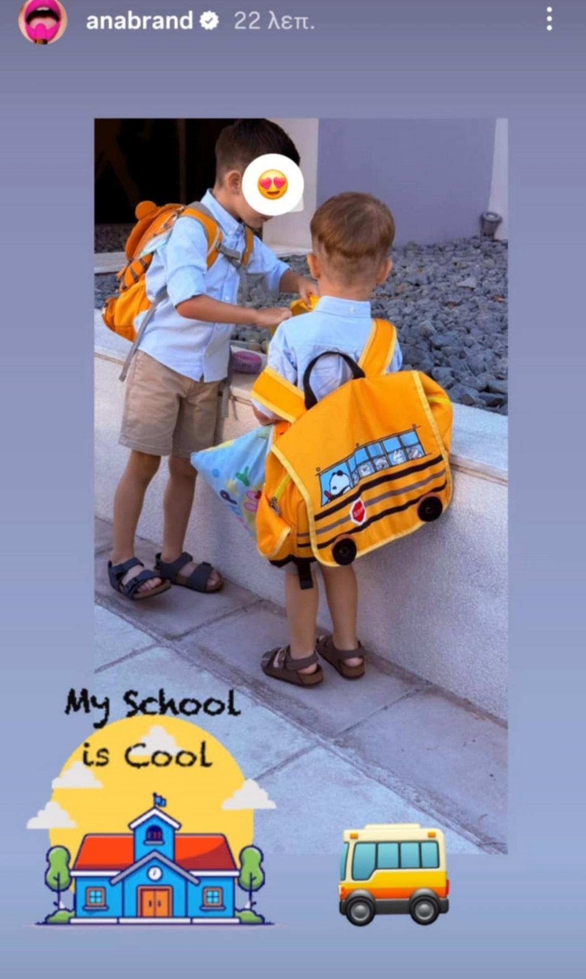 Τους δύο μεγαλύτερους γιους της, Χρήστο και Νικόλα, απαθανάτισε η γνωστή makeup artist και επιχειρηματίας με τις - super cute - τσάντες τους στην πλάτη.