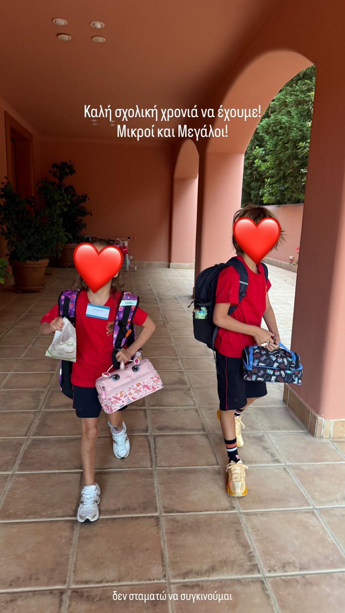 Η Ολυμπιονίκης απαθανάτισε και τα δύο παιδάκια της, τη Χριστιάννα και τον Φίλιππο, μέσα στο σχολείο και έγραψε στο post της: «Κάθε Σεπτέμβρης φέρνει νέες αρχές✨ Καλή σχολική χρονιά με υγεία , υπομονή και όμορφες στιγμές σε παιδιά, γονείς και εκπαιδευτικούς. 📚❤️».