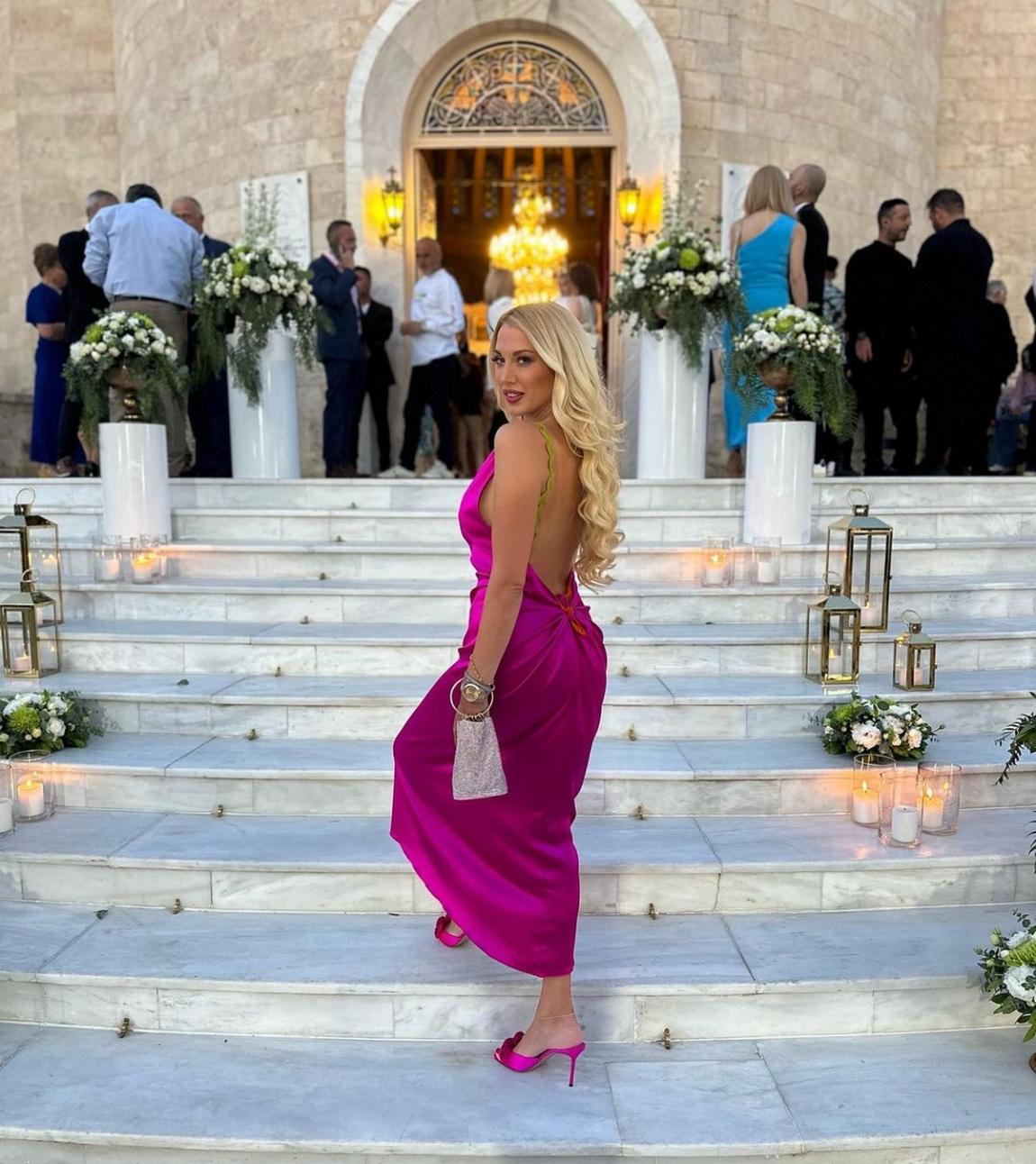 I'm a Barbie girl in a Barbie world! Η Κωνσταντίνα Σπυροπούλου υιοθέτησε το Barbiecore trend για να παραστεί στη βάφτιση του γιου της Ιωάννας Σιαμπάνη και του Τζίμη Σταθοκωστόπουλου. Η παρουσιάστρια ολοκλήρωσε το look με silver strass τσαντάκι και φούξια mules επιλέγοντας την απόλυτη μονοχρωμία για την περίσταση.