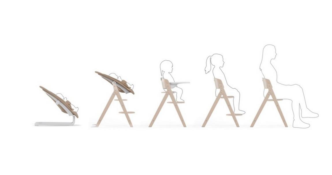 - Περιλαμβάνει μια σειρά λύσεων που ακολουθούν το μικρό μας σε κάθε στάδιο: ένα ριλάξ που χρησιμοποιείται από την πρώτη του μέρα, το βρεφικό σετ για όταν το παιδί είναι σε θέση να καθίσει, περίπου στους 6 μήνες, το παραδοσιακό καρεκλάκι, αλλά και μια καθημερινή καρέκλα.