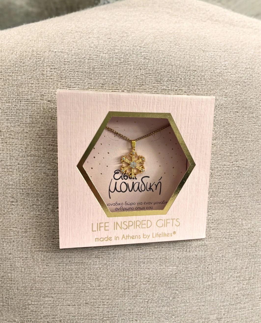 #9 Gift box "είσαι μοναδική" κολιέ snowflake, LifeLikes: Και κόσμημα και συσκευασία δώρου και ένα συγκινητικό μήνυμα. Γιατί το γούρι το φέρνουμε εμείς οι ίδιοι στον εαυτό μας, αρκεί να έχουμε αυτοπεποίθηση!