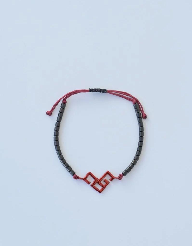 #4 Συλλεκτικό Χειροποίητο Βραχιόλι 2026, Kritsimis Jewellery: Στο κέντρο του, ένα αφηρημένο μοτίβο σε ζωηρό κόκκινο παραπέμπει σε έναν κόμπο που λύνεται, συμβολίζοντας την υπέρβαση των εμποδίων.