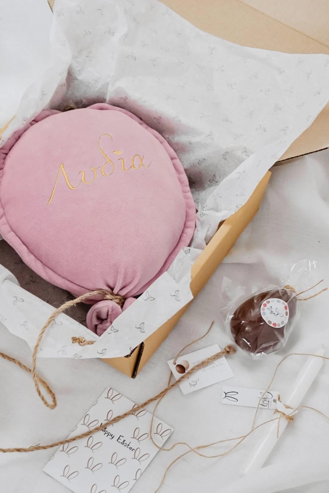 Λαμπάδα, σοκολατένιο αυγό και διακοσμητικό μπαλόνι με κεντημένο το κείμενο της επιλογής σας περιλαμβάνει ένα από τα easter boxes των The Angel.