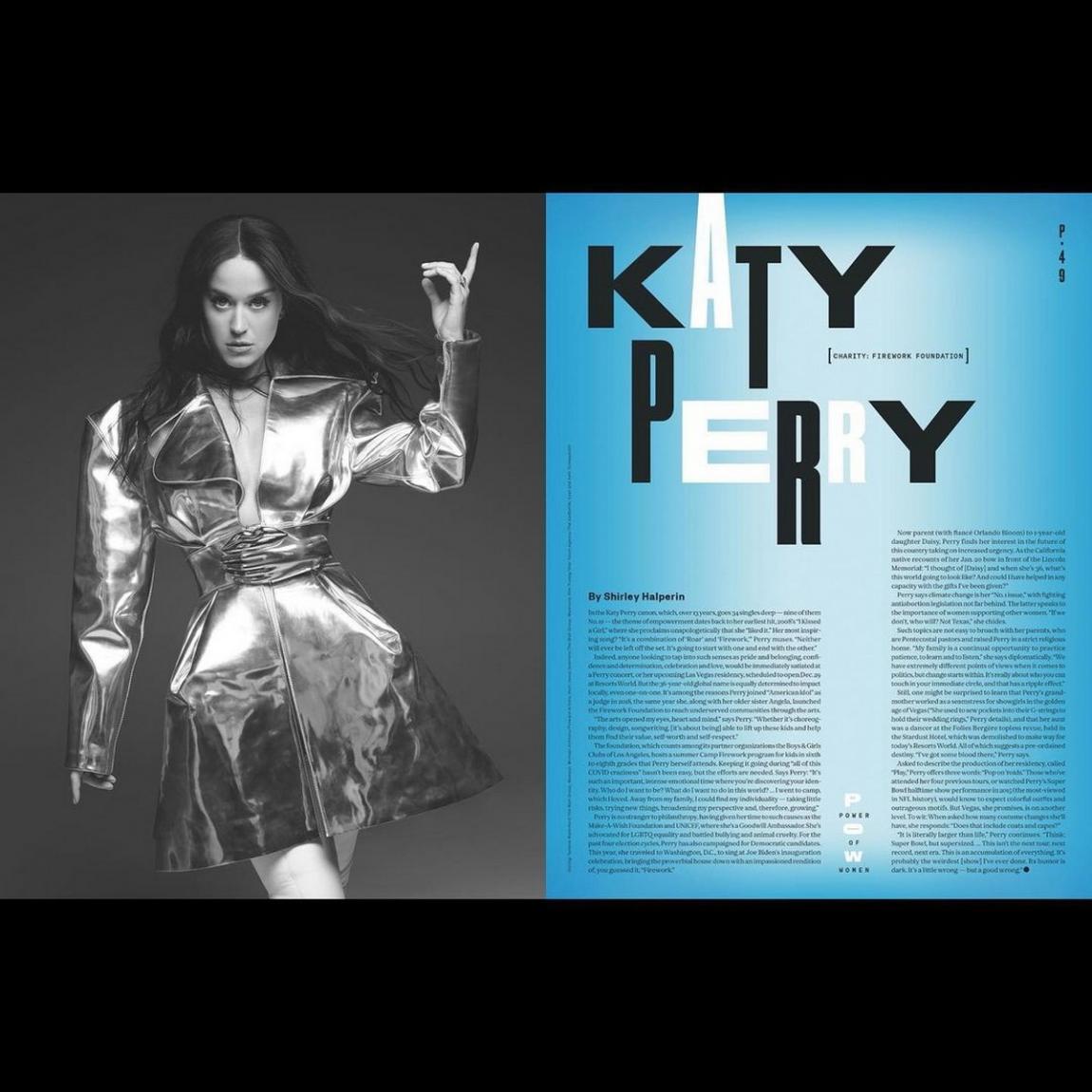 Σε συνέντευξή της στο περιοδικό Variety για το τεύχος Power of Women, η Katy Perry μίλησε για τις αλλαγές που η μητρότητα έφερε στη ζωή της και εξήγησε πώς η μόλις δεκατριών μηνών κόρη της, τής δίδαξε το νόημα της πραγματικής, άνευ όρων αγάπης. "Ως νέα μαμά, τις πρώτες έξι εβδομάδες λες " Τι;"... Είσαι υπεύθυνος για κάποιον που δεν μπορεί καν να στερεώσει το κεφάλι του. Είναι μια πραγματική αλλαγή» δήλωσε, συμπληρώνοντας "Είναι ό,τι καλύτερο!".