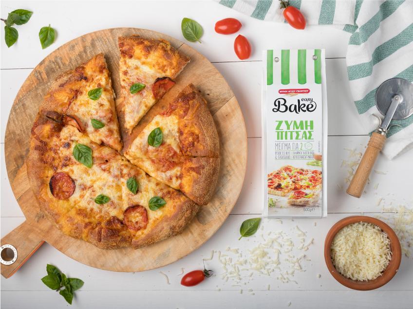 Επιστρέφετε στο σπίτι αλλά δεν έχετε προλάβει να μαγειρέψετε από την προηγούμενη μέρα. Η ευρηματικότητα της Ελληνίδας μαμάς, όμως, δεν έχει όρια. Ανοίγει το ψυγείο και αυτοσχεδιάζει με ό,τι βρει: Τυρί του τοστ ή οποιοδήποτε άλλο κίτρινο τυρί, ζαμπόν, σάλτσα ντομάτας, μια πράσινη πιπεριά... Αυτά αρκούν για την πιο νόστιμη πίτσα. Όσο για τη ζύμη, το πιο εύκολο! Η συσκευασία Easy Bake περιέχει το μείγμα και μάλιστα για δύο πίτσες, μία special και μία vegetarian!