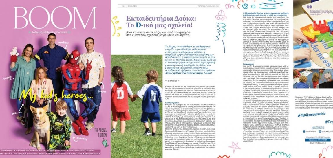 Έτσι, κάθε μαθητής των Εκπαιδευτηρίων Δούκα, από το Προνήπιο μέχρι την ολοκλήρωση των σπουδών του, εξασφαλίζει μια ολόπλευρη γνωσιακή και κοινωνικο-συναισθηματική ανάπτυξη, μέσα από την πιο γόνιμη και συναρπαστική εκπαιδευτική εμπειρία που θα μπορούσαμε να του προσφέρουμε: Ένα σχολείο όπως ακριβώς το έχουμε ονειρευτεί. Το Dικό μας σχολείο!