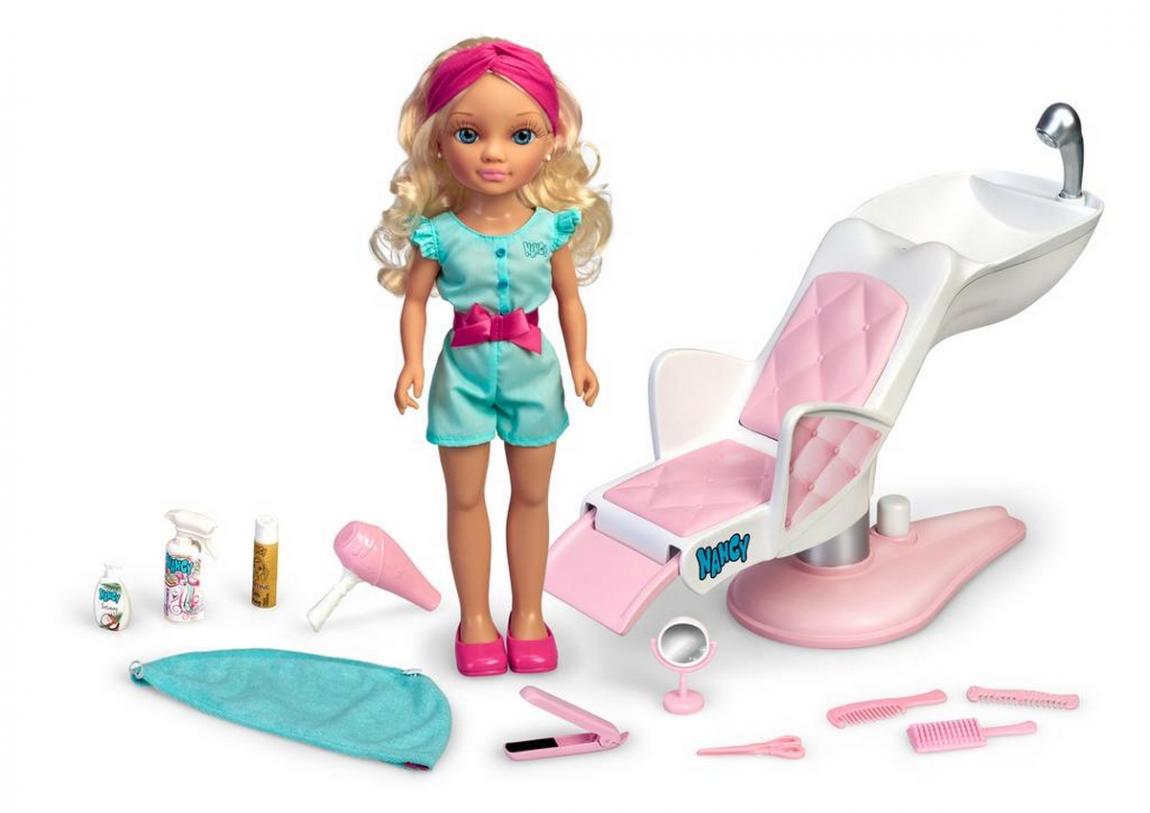 Nancy - Μια μέρα στο Κομμωτήριο: Αν κάθε απόγευμα η κόρη σας θέλει να παίξετε κομμωτήριο, βάζοντάς σας να καθίσετε αναπαυτικά στον καναπέ για να σας φτιάξει τα πιο... εντυπωσιακά χτενίσματα, τότε αυτό το δώρο θα το λατρέψει! Δώστε τη θέση σας στη Nancy και αφήστε την μικρή σας hairstylist να λούσει τα μαλλιά της αγαπημένης της κούκλας στην καρέκλα κομμωτηρίου που λειτουργεί αληθινά με νερό, να τα στεγνώσει με το πιστολάκι και να ετοιμάσει τα πιο απίθανα χτενίσματα με περισσότερα από 10 αξεσουάρ που περιέχονται στη συσκευασία.
