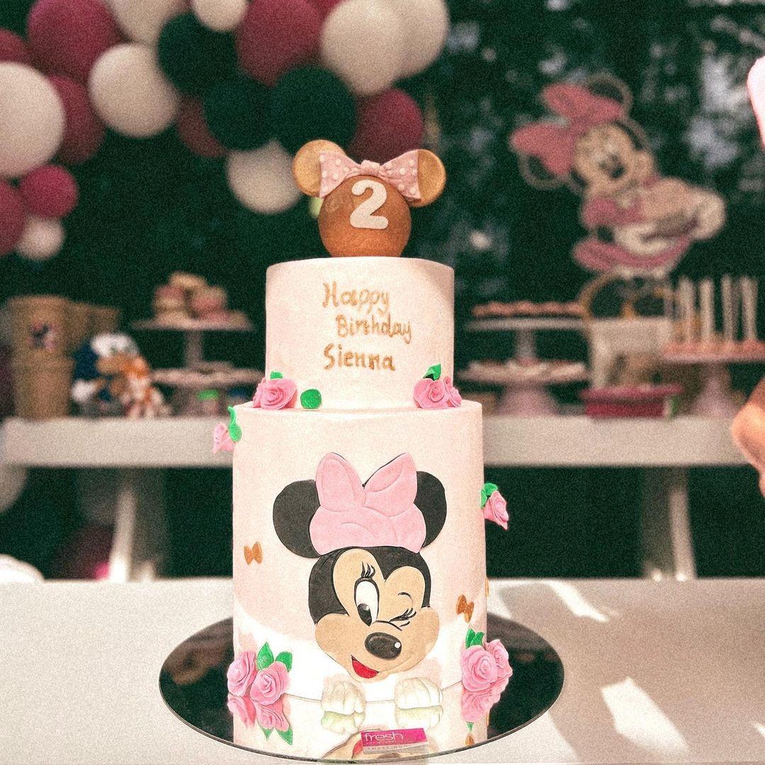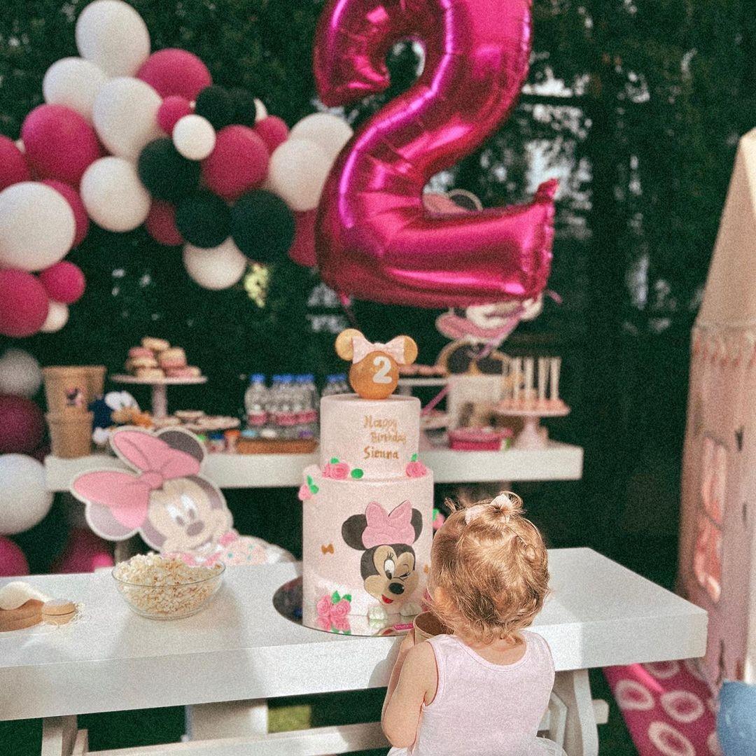 Ο αριθμός 2 σε φούξια χρώμα δέσποζε στο κέντρο του χώρου, ενώ μπαλόνια σε pale pink, φούξια και μαύρο- Minnie Mouse inspired ξανά- ολοκλήρωναν τη διακόσμηση του πάρτι. Όσο για την τούρτα της μικρούλας; Ήταν υπερπαραγωγή! Συγκεκριμένα, οι γονείς της επέλεξαν μια διώροφη τούρτα Minnie Mouse, που στην κορυφή της είχε τον αριθμό 2 και έγραφε: «Happy birthday Sienna».