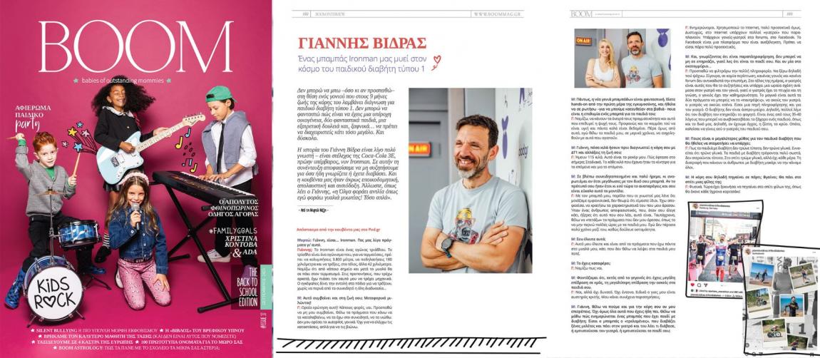 Δεν μπορώ να μπω –όσο κι αν προσπαθώ– στη θέση ενός γονιού που στους 9 μήνες ζωής της κόρης του λαμβάνει διάγνωση για παιδικό διαβήτη τύπου 1. Δεν μπορώ να φανταστώ πώς είναι να έχεις μια υπέροχη οικογένεια, δύο φανταστικά παιδιά, μια εξαιρετική δουλειά και, ξαφνικά… να πρέπει να διαχειριστείς κάτι τόσο μεγάλο. Και δύσκολο. Η ιστορία του Γιάννη Βίδρα είναι λίγο πολύ γνωστή – είναι στέλεχος της Coca-Cola 3E, πρώην υπέρβαρος, νυν Ironman. Σε αυτήν τη συνέντευξη αποφασίσαμε να μη συζητήσουμε για όσα ήδη γνωρίζετε ή έχετε διαβάσει. Και η κουβέντα μας ήταν άκρως εποικοδομητική, απολαυστική και αισιόδοξη. Άλλωστε, όπως λέει ο Γιάννης, «η Όλγα φοράει αντλία όπως εγώ φοράω γυαλιά μυωπίας! Τόσο απλά».
