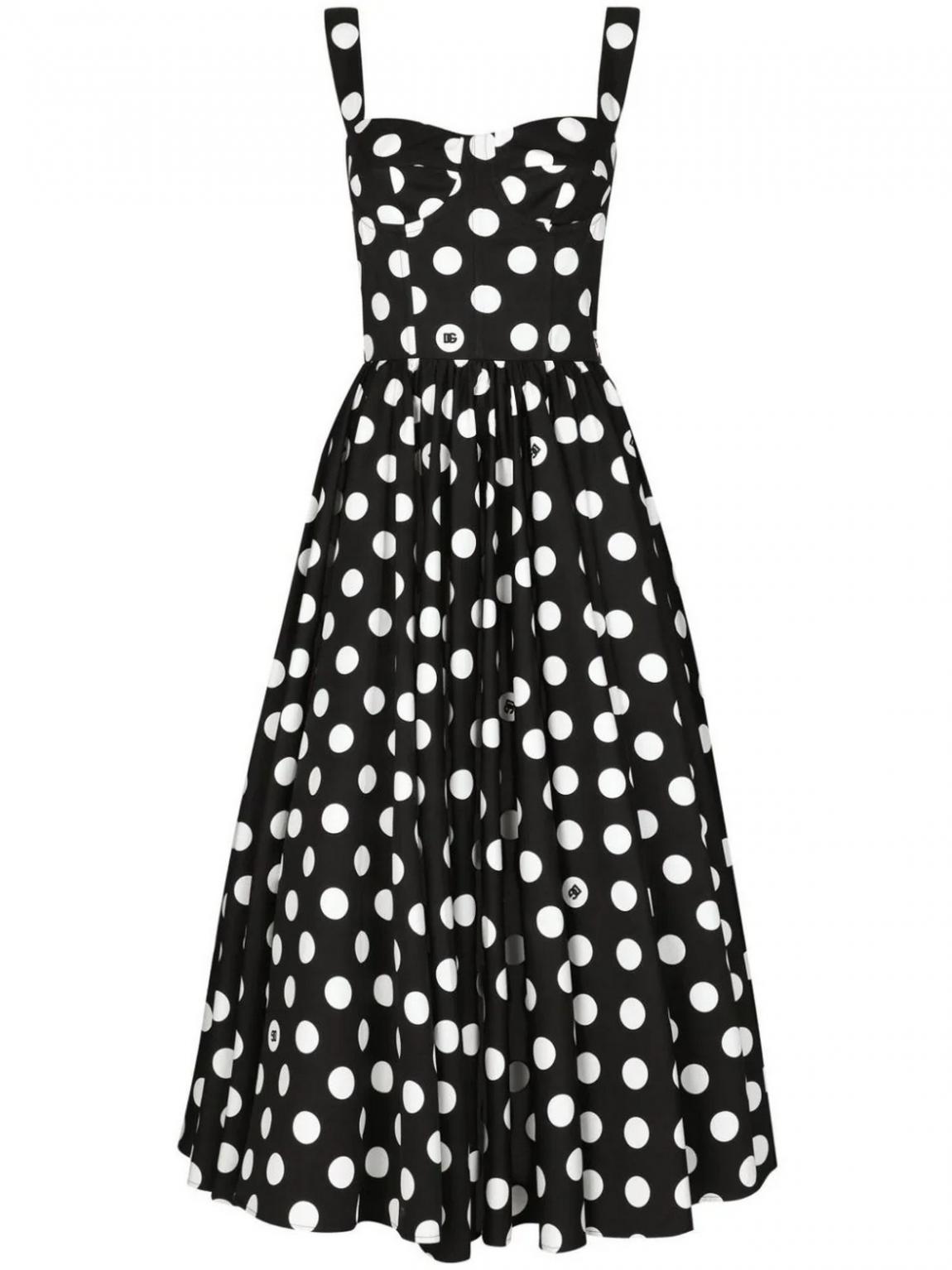 #2 Polka-dot corset midi dress, Dolce & Gabbana, Farfetch: Η επιτομή του pin up fashion! Συνδυάστε αυτό το φόρεμα με κόκκινα ή φούξια αξεσουάρ και κλέψτε τις εντυπώσεις.