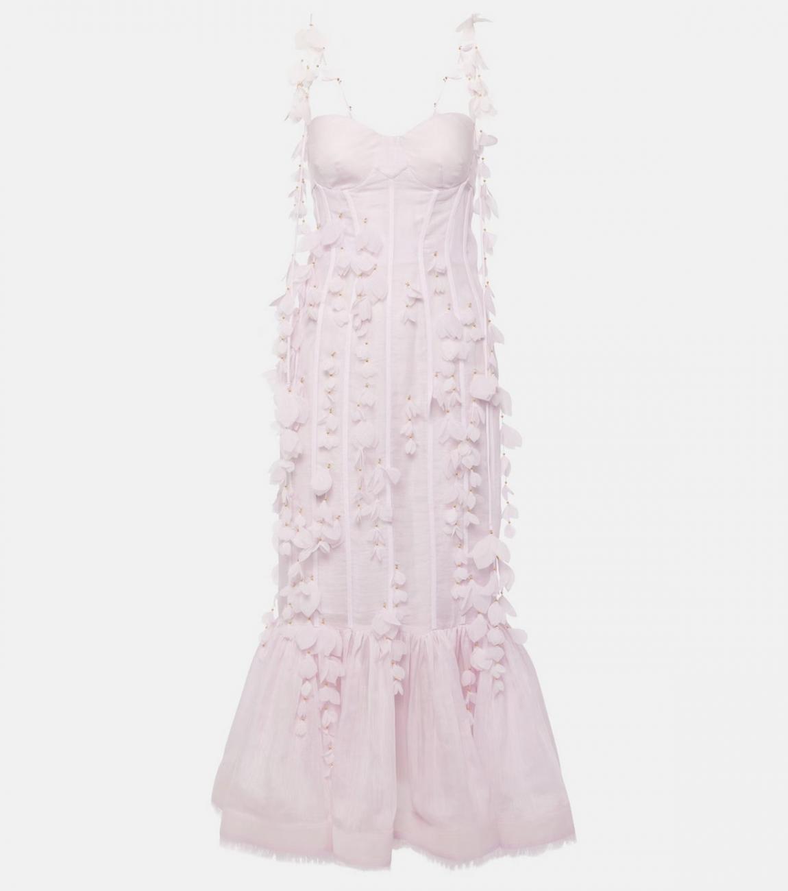 #8 Floral-appliqué linen and silk bustier gown, Zimmermann, Mytheresa: Σε mermaid γραμμή και με απλικέ floral λεπτομέρειες, αυτό το φόρεμα είναι ιδανικό για νονές που βαπτίζουν και στην πόλη και στο νησί. Απογειώστε το με ψηλοτάκουνα πέδιλα σε pastel απόχρωση και χρυσά κοσμήματα, και δημιουργήστε μια εμφάνιση που αναμφίβολα θα γίνει... talk of the town.