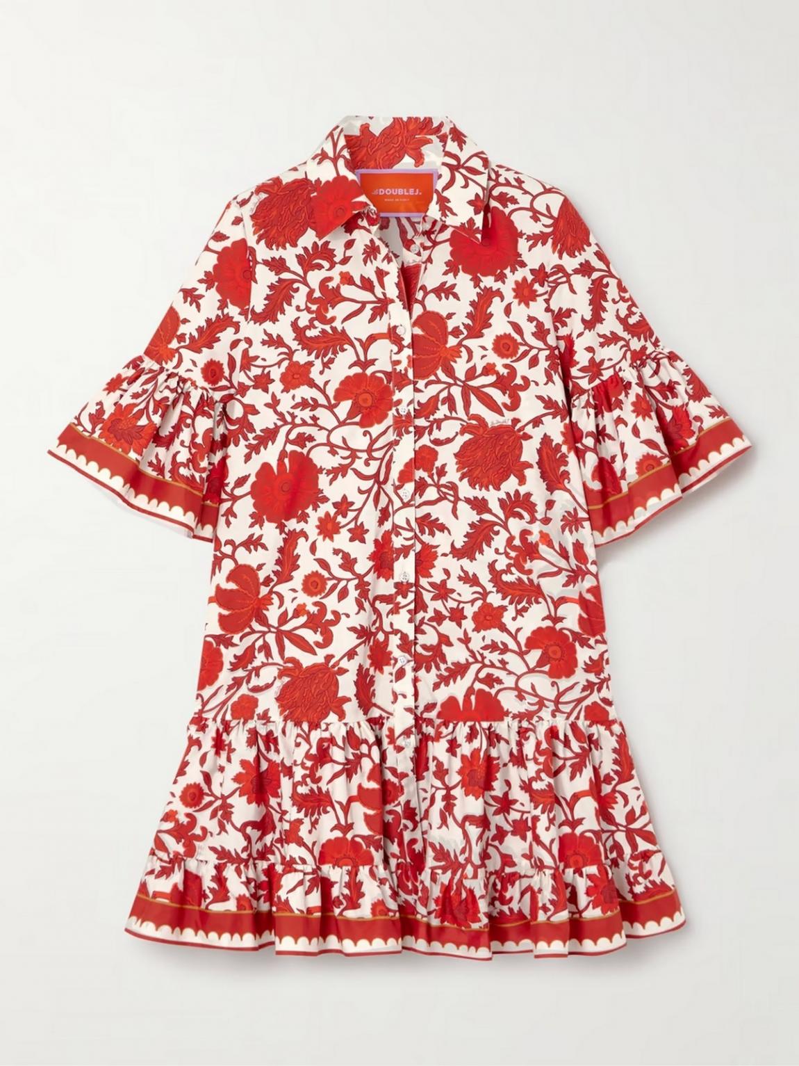 #3 Choux ruffled printed cotton-twill mini dress, La DoubleJ, Net-a-porter: Σε περίπτωση που λατρεύετε τα mini φορέματα και δεν μπορείτε να αντισταθείτε, επιλέξτε ένα floral όπως αυτό. Είναι άνετο, σε A-line, εξαιρετικά κομψό και με πρωταγωνιστή το πιο διαχρονικό color trend: το κόκκινο!