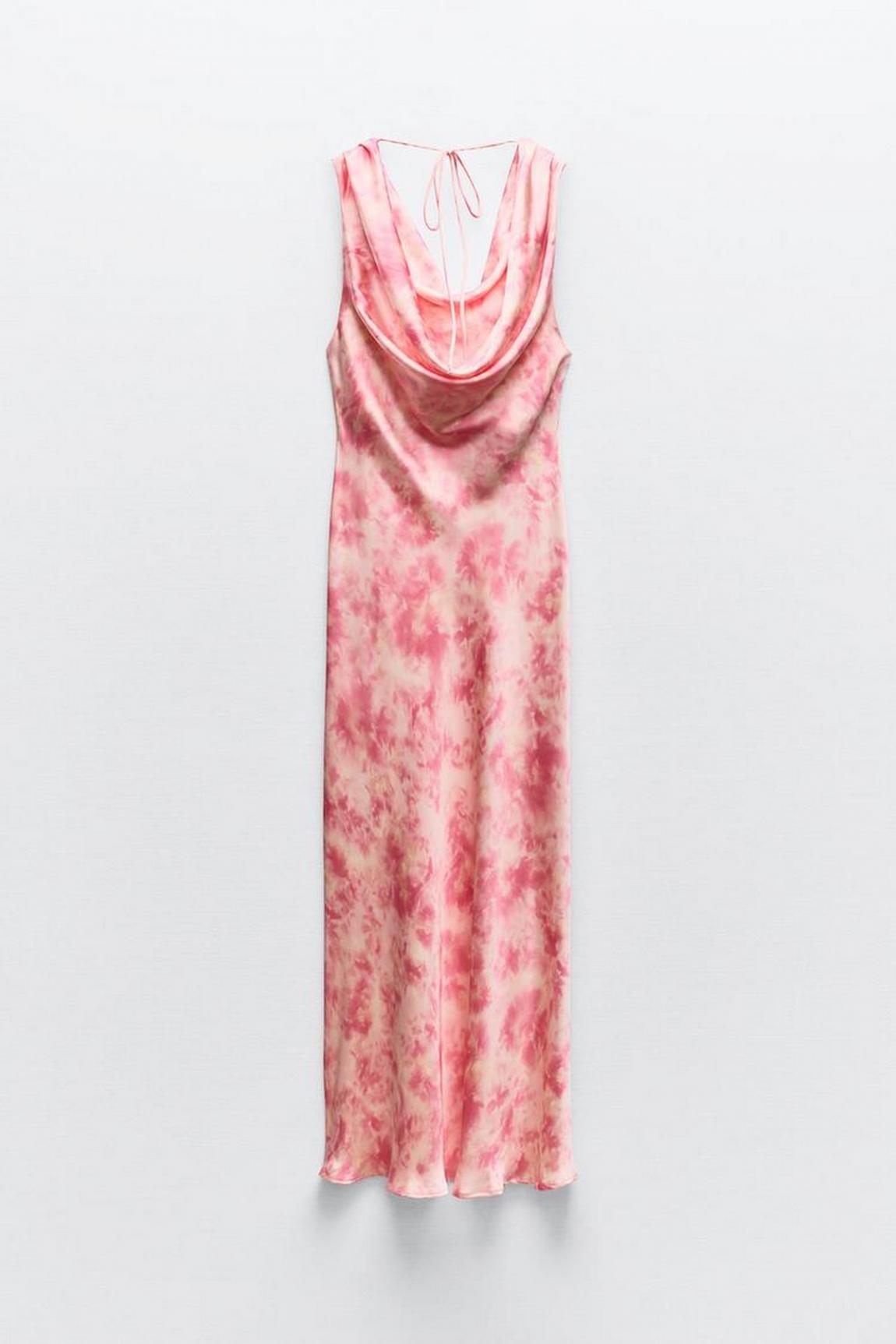 #1 Tie Dye Print Satin Effect Dress, Zara: Με ancient greek style flat σανδάλια ή με ψηλοτάκουνα strappy πέδιλα; Όπως κι αν φορέσετε αυτό το φόρεμα θα είστε super chic!