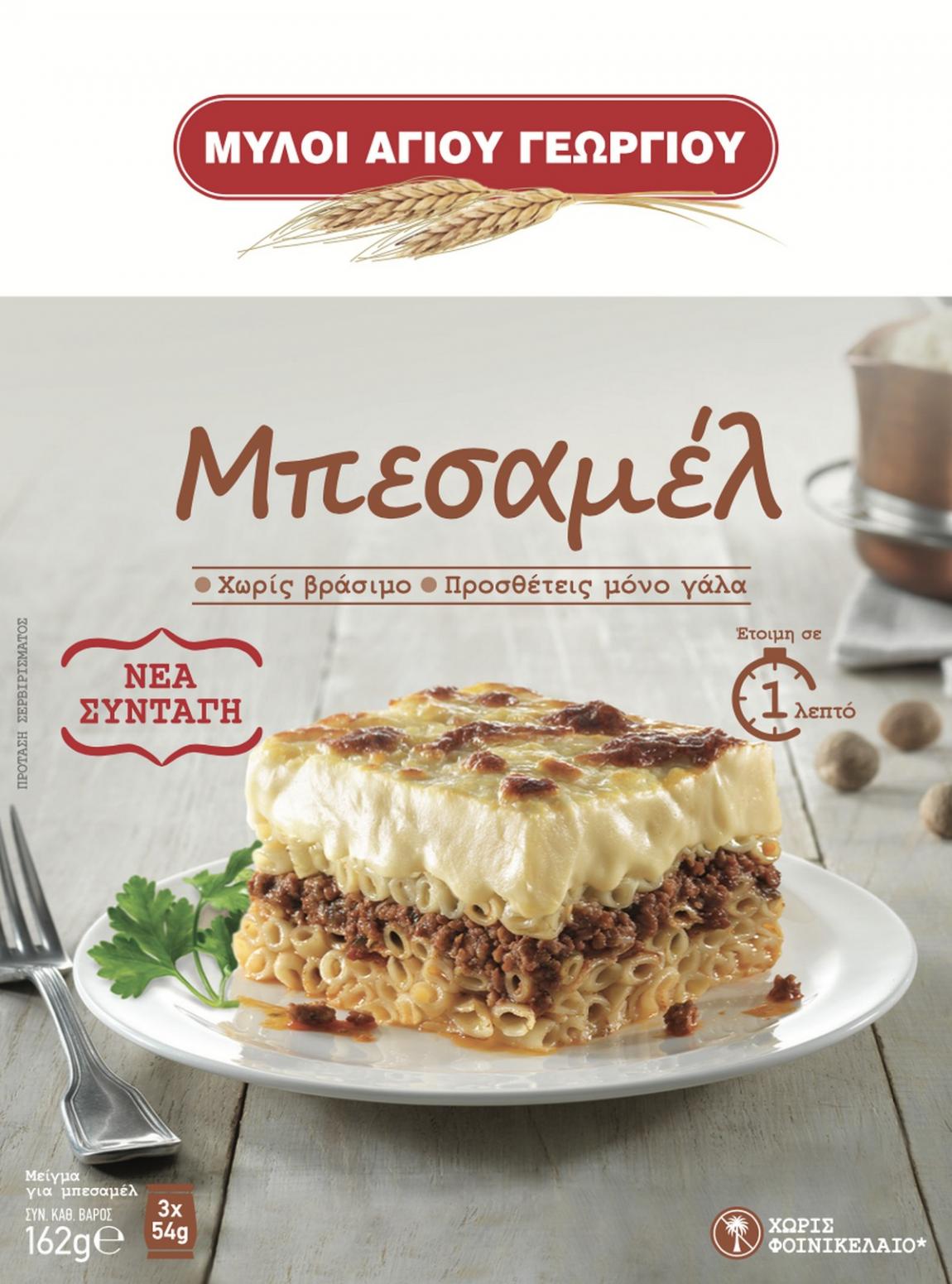 Για την μπεσαμέλ • 1 φάκελο μείγμα για Μπεσαμέλ Μύλοι Αγίου Γεωργίου • 500 ml πλήρες γάλα • 200 γρ. τριμμένη γραβιέρα