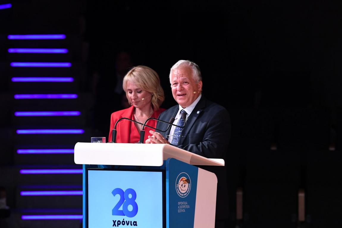 Χαιρετισμούς απηύθυναν εκ μέρους της κυβέρνησης η κα Σοφία Ζαχαράκη, Υπουργός Κοινωνικής Συνοχής και Οικογένειας, η οποία ανέφερε: «Δηλώνουμε σεβασμό προς αυτά τα 28 χρόνια που μόνο ουσία έχουν και οδοδείκτες προς πολιτικές που εφαρμόσαμε, εφαρμόζουμε και θα εφαρμόσουμε σε συνεργασία και με το “Χαμόγελο”. Το “Χαμόγελο” συνεχίζει να εξελίσσεται και με αυτό και εμείς μαζί, θα πλάθουμε πολιτικές που θα έχουν μόνο ένα στόχο την ευημερία του παιδιού». Ο κος Μάριος Θεμιστοκλέους, Υφυπουργός Υγείας, ανέφερε τη δική του εμπειρία αναφορικά με το έργο του Οργανισμού: «“Το Χαμόγελο του Παιδιού" έχει βοηθήσει χιλιάδες παιδιά, παραπάνω από 30.000 παιδιά, που με τις Κινητές Ιατρικές Μονάδες του, έχει μεταφέρει από και προς Νοσοκομεία, βοηθώντας το σύστημα Υγείας. Το ΕΚΑΒ στηρίζεται στο “Χαμόγελο”, στη βοήθειά του. Αρκεί 1 τηλεφώνημα πολλές φορές, για να γίνει η βοήθεια πράξη, όπως έγινε και στον Παλαμά της Θεσσαλίας, που μέσα σε 9 ώρες το “Χαμόγελο” ήταν εκεί για να στηρίξει τους συμπολίτες μας». Ο κος Χρήστος Στυλιανίδης, Υπουργός Ναυτιλίας και Νησιώτικης Πολιτικής, μέσω βίντεο, απηύθυνε και εκείνος χαιρετισμό ευχαριστώντας για την τιμή να συμμετέχει -έστω και διαδικτυακά- στα 28 χρόνια, και ανέφερε: «Η σημερινή εκδήλωση είναι μια ευκαιρία να αναδειχθεί και να καταγραφεί το σπουδαίο έργο που έχει γίνει, και την ίδια στιγμή να επισημάνουμε την μεγάλη σημασία της συνεισφοράς αυτού του Οργανισμού στην ευημερία των παιδιών».