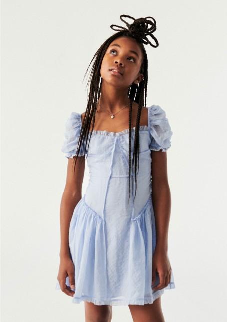 Η γοητεία της λαμπερής μόδας συναντά τη μαγεία της καινοτομίας, με βασικά κομμάτια για κάθε στιγμή της ημέρας από φορέματα έως και μοντέρνα streetwear, σε μια ονειρική παλέτα, από απαλό ροζ και μπλε. Ένα φόρεμα διακοσμημένο με πέρλες σε απαλό κίτρινο χρώμα με βολάν, καθώς και ένα φόρεμα διακοσμημένο με στρας και μαργαριτάρια σε μπλε χρώμα, θα κερδίσουν τις νεανικές ρομαντικές καρδιές.
