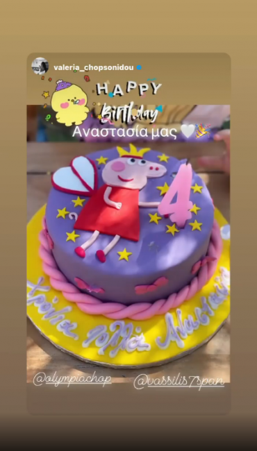 Το θέμα του πάρτι ήταν η Πέππα το Γουρουνάκι, όπως μπορούμε να διακρίνουμε και από την εντυπωσιακή τούρτα, ενώ όλα τα μέλη της οικογένειας φωτογραφήθηκαν μαζί με την εορτάζουσα ως είθισται σε τέτοιες περιστάσεις!