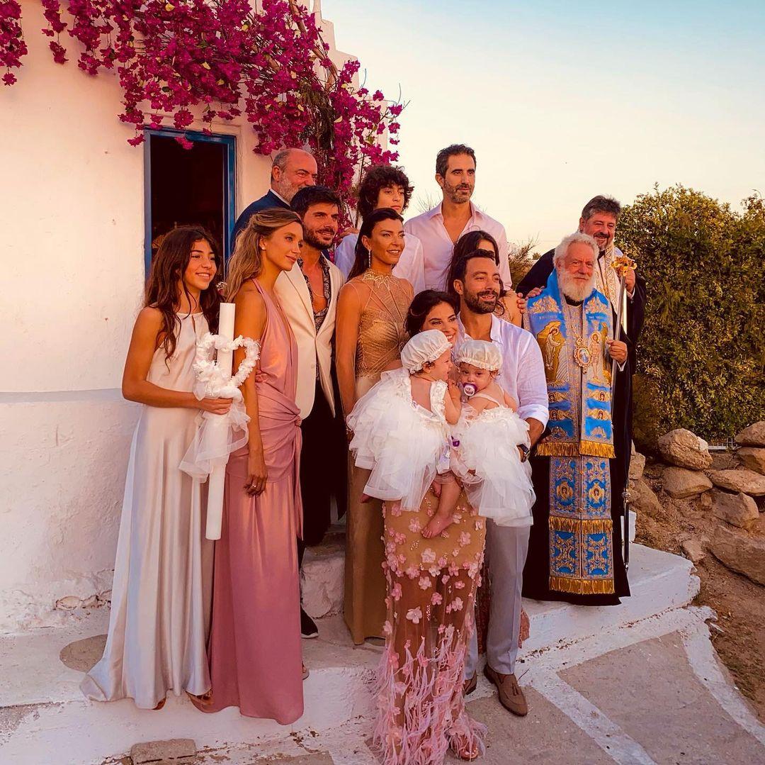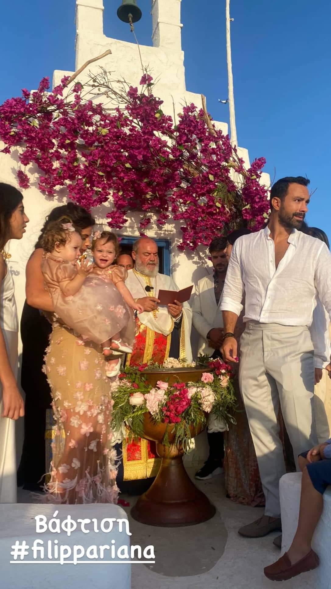 Το μυστήριο τελέστηκε στον Ιερό Ναό της Αγίας Άννας, στον Πλατύ Γιαλό της Μυκόνου, και ακολούθησε δεξίωση στο γνωστό beach bar SantAnna. Η χρωματική παλέτα της βάπτισης των διδύμων κινήθηκε σε girly, ροζ αποχρώσεις, με τον ονειρεμένο ανθοστολισμό από τον ταλαντούχο floral artist Δημήτρη Λαμπρακόπουλο, τις εντυπωσιακές μπαλονοσυνθέσεις από την εταιρεία Master Fireworks, τα statement φωτιζόμενα γράμματα από το The Letter Co. με τα ονόματα των κοριτσιών και τα candy bars με τα λαχταριστά γλυκά από το The Cakers να δημιουργούν ένα παραμυθένιο σκηνικό!