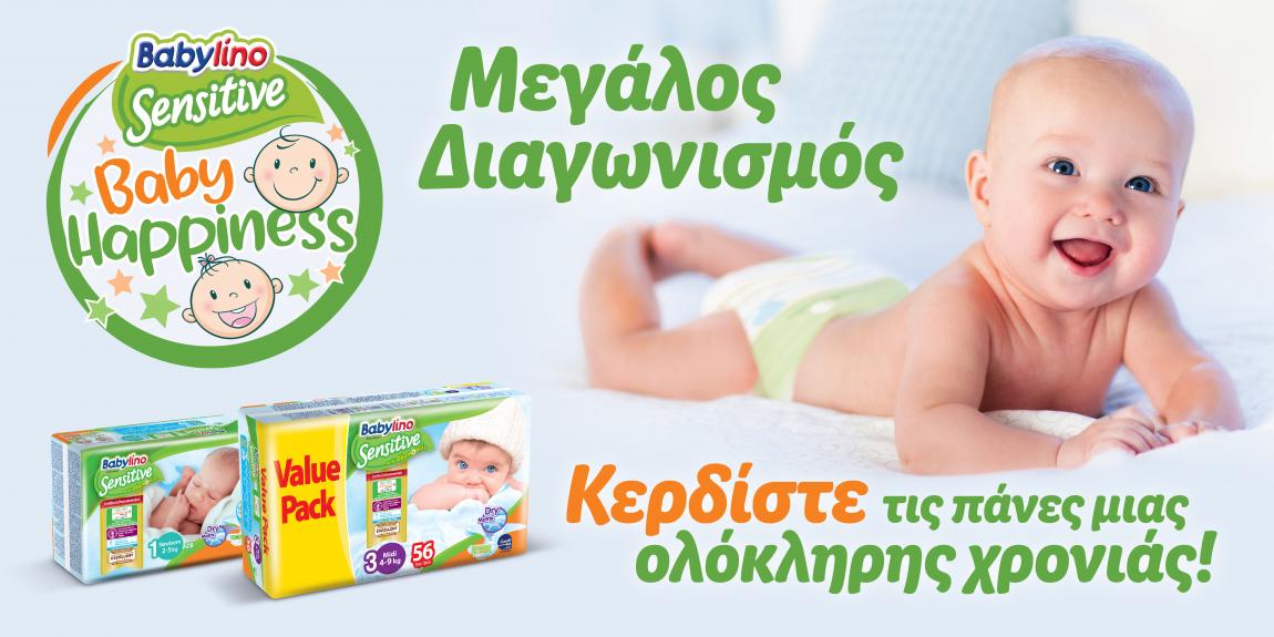 Μεγάλος Διαγωνισμός BOOM x Babylino Sensitive: Στο πλαίσιο της καμπάνιας «Babylino Happiness Tips», τα Babylino Sensitive σας δίνουν τη δυνατότητα να κερδίσετε τις πάνες του μωρού σας για έναν χρόνο! Πώς;