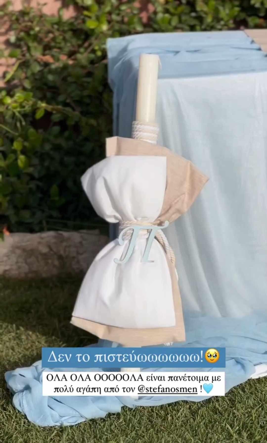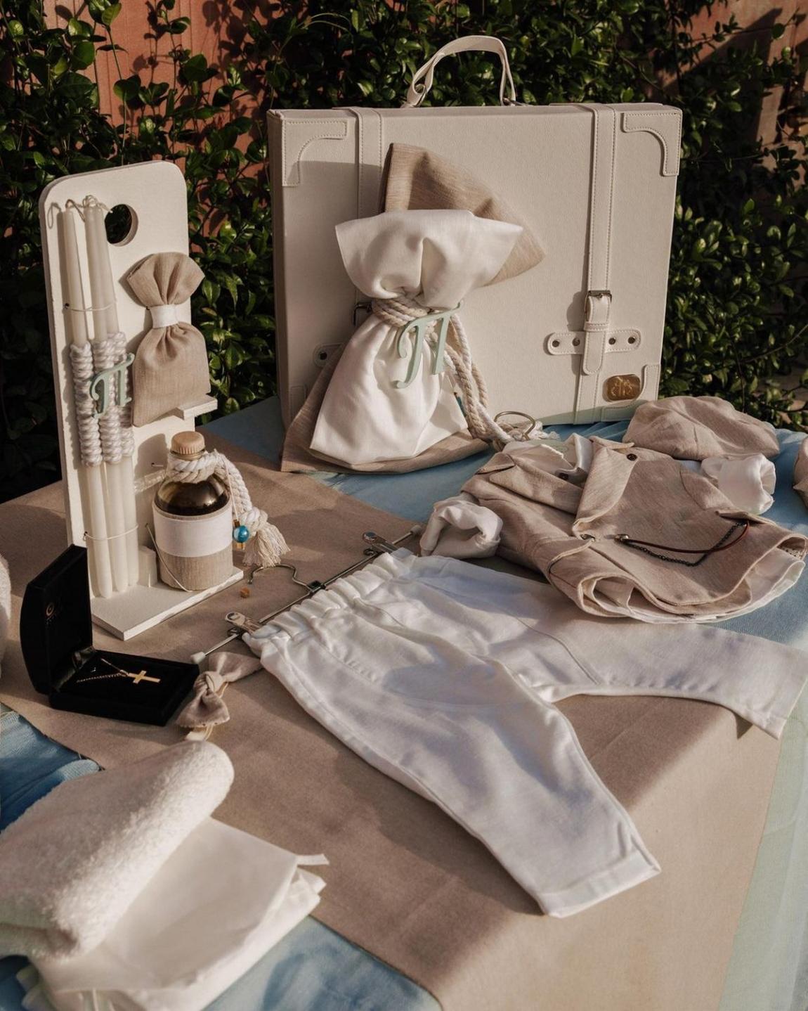 Highlight details; Η υπέροχη λαμπάδα του νεοφώτιστου Πάρη με το γαλάζιο μονόγραμμά του στο κέντρο της και τα λευκά μαρτυρικά, με την υπογραφή της Baby Bloom. Όπως, άλλωστε, και όλο το λευκό - με μπεζ πινελιές- baptism set του, το οποίο βλέπετε στη φωτογραφία με κάθε λεπτομέρεια. Μα δεν είναι υπέροχο;