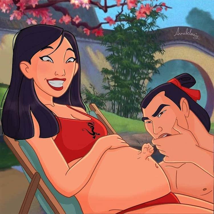 Οι πριγκίπισσες της Disney αποτελούν σταθερή και διαχρονική πηγή έμπνευσης για τους καλλιτέχνες σε όλο τον κόσμο, εξαιτίας της μαγείας και της γοητείας που αποπνέουν. Αυτός είναι ο λόγος που όλο και πιο συχνά, οι αγαπημένες ηρωίδες των μικρών και μεγάλων κοριτσιών πρωταγωνιστούν σε ευφάνταστα σκίτσα που απεικονίζουν σύγχρονα στιγμιότυπα της καθημερινότητας! Η καλλιτέχνις Anna Belenkiy, για παράδειγμα, θέλησε να αποτυπώσει το ταξίδι της πρώτης εγκυμοσύνης της, σχεδιάζοντας τις πριγκίπισσες της Disney ως έγκυες.