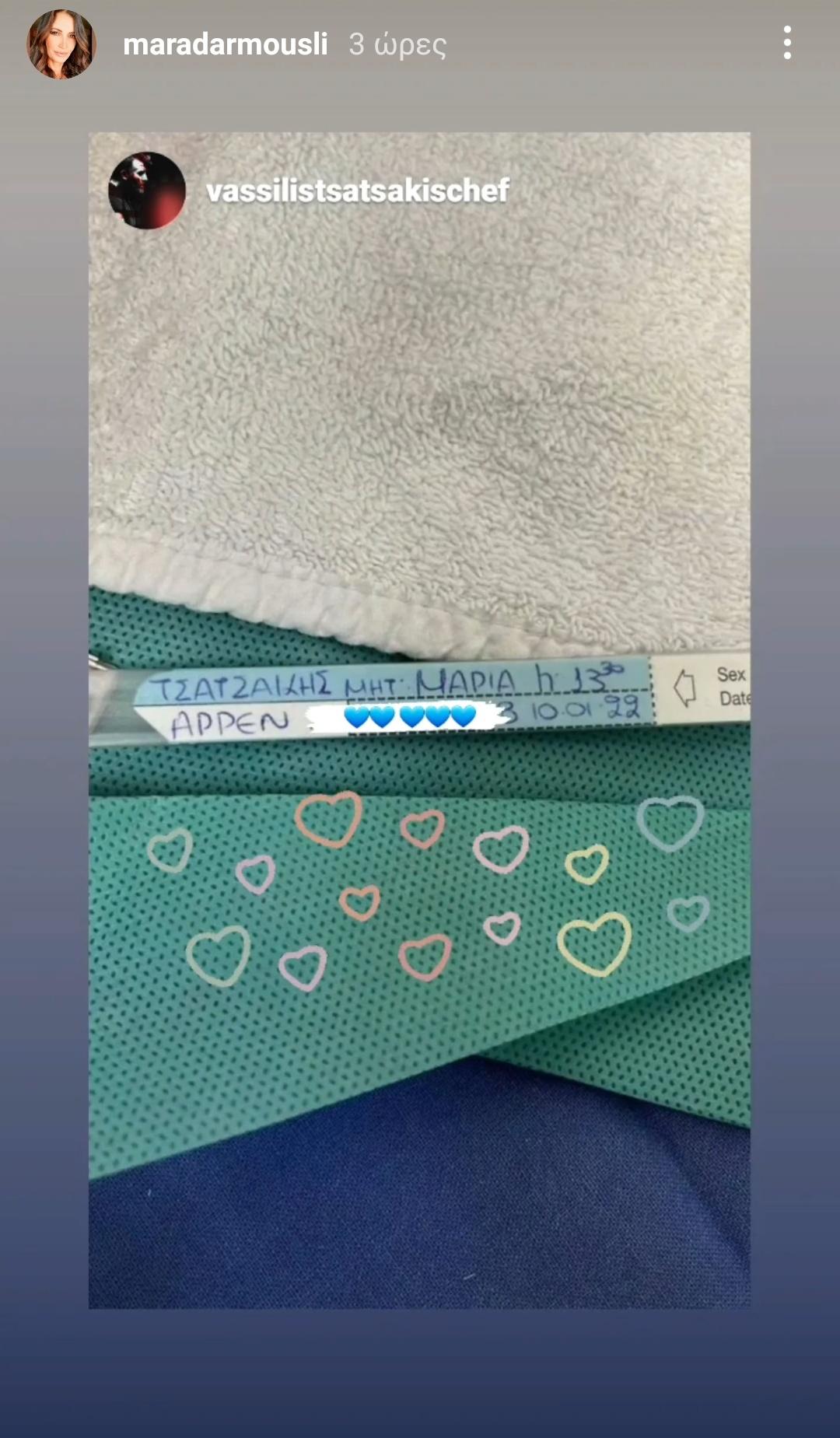 Ο σύζυγος της Μάρας Δαρμουσλή και ευτυχισμένος πλέον μπαμπάς δημοσίευσε την πρώτη φωτογραφία του μωρού μέσα από το μαιευτήριο στον προσωπικό του λογαριασμό στο Instagram, την οποία εκείνη κοινοποίησε με τη σειρά της στο δικό της προφίλ.